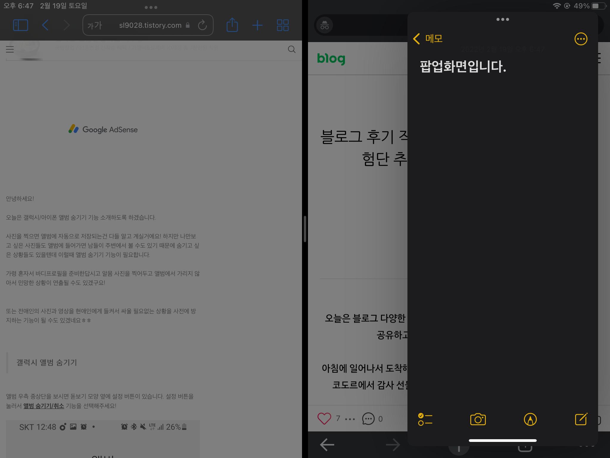 아이패드 분할과 팝업 화면 사용 방법이 궁금하시다면 위에 링크를 참고해 주세요!