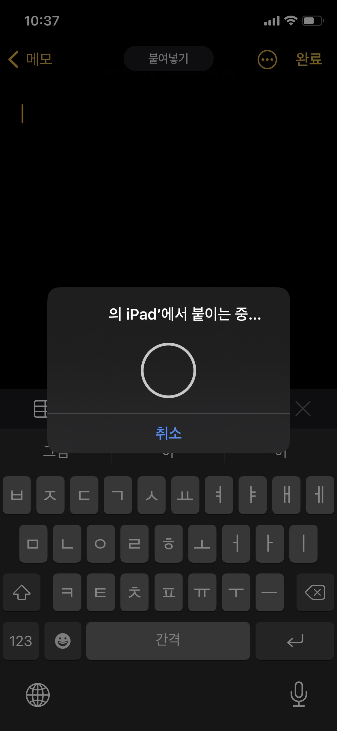 복사한 고양이 사진을 아이폰 메모장에서 붙여넣기를 해보겠습니다. 그럼 고양이 사진이 정상적으로 불러와질까요~?