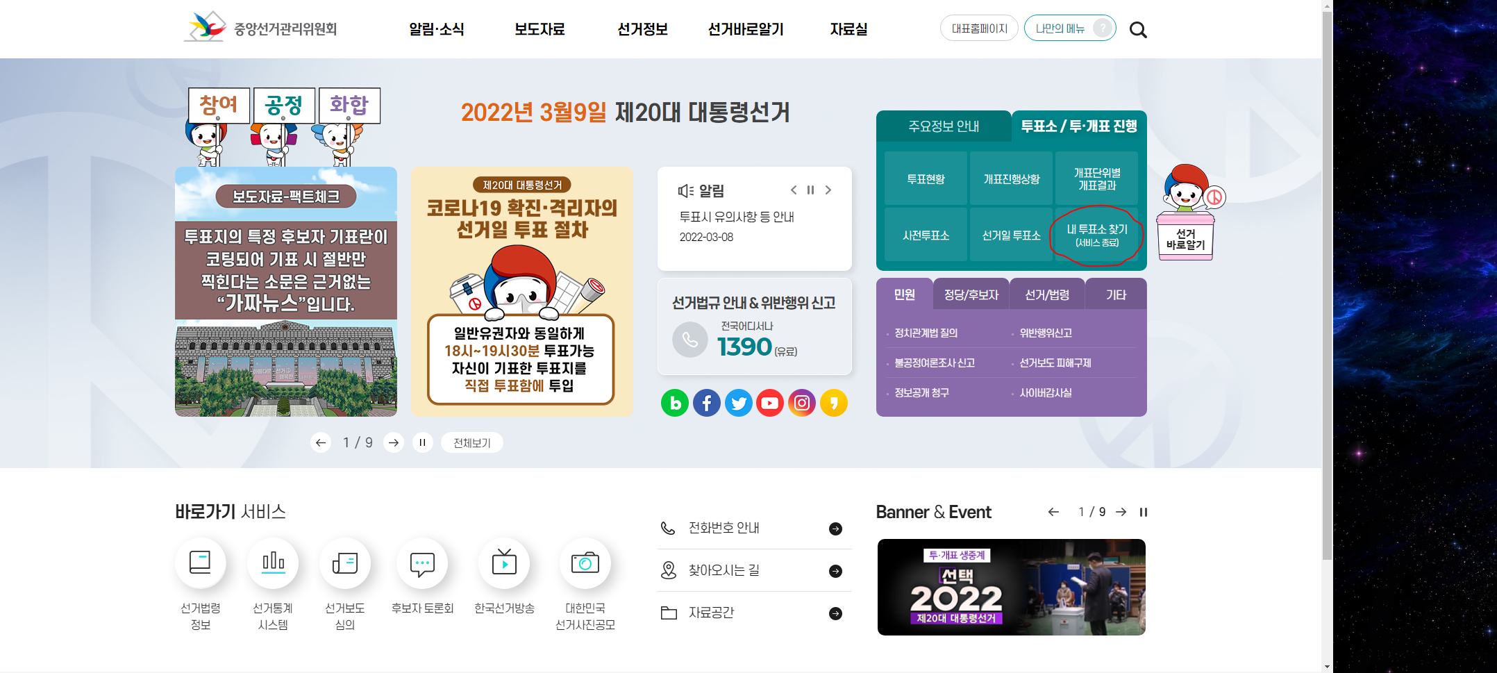 오늘은 2022.03.09는 제20대 대통령 선거날입니다. 선거날을 맞이하여 내 투표소 찾기라는 홈페이지를 소개하고자 글을 작성하게 되었습니다.