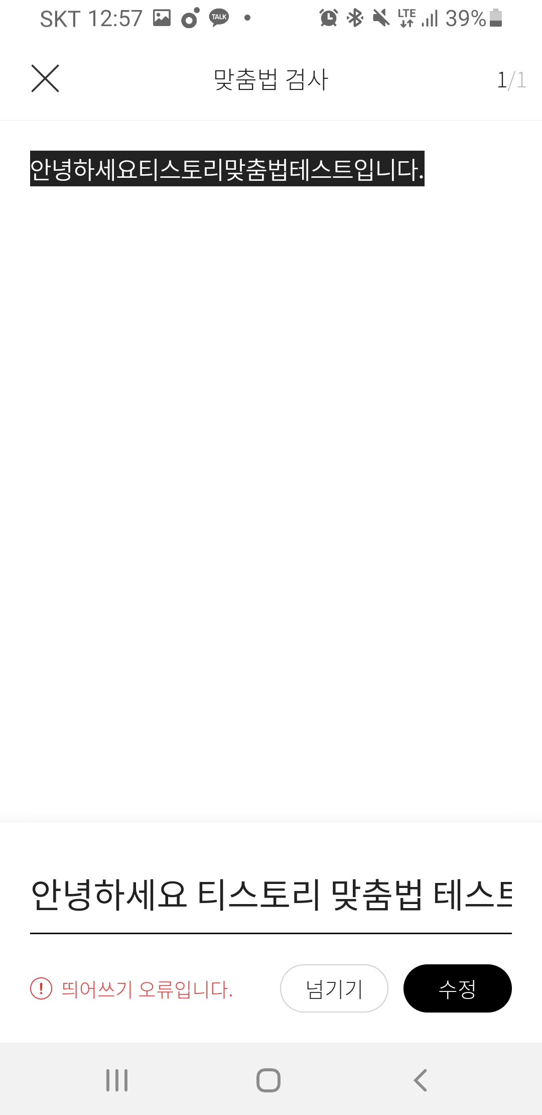 위 과정으로 모바일에서도 맞춤법 검사가 가능해졌습니다ㅎㅎ