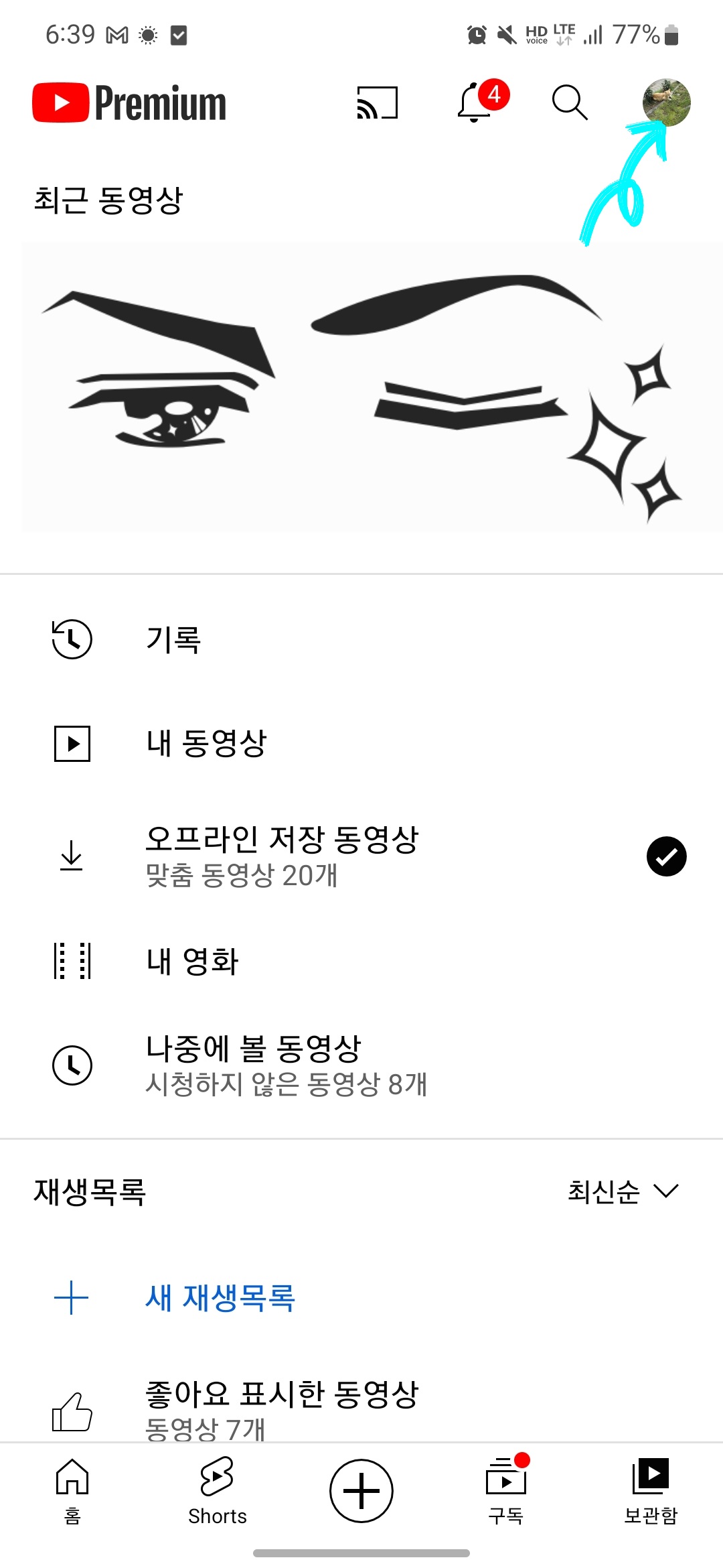 - 유튜브 앱 실행 후 우측 상단 계정 버튼 선택