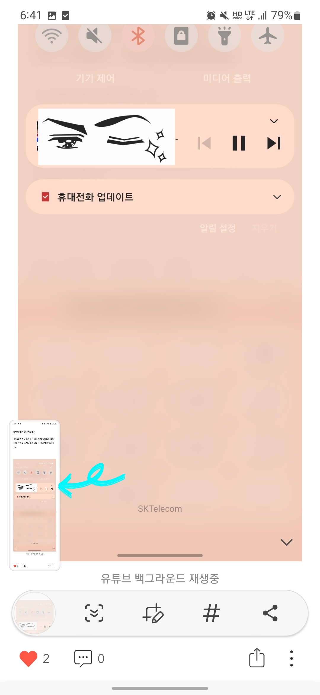 스크롤 캡처 버튼을 누르게 되면 좌측 하단에 캡처 진행 중인 사진이 보이며, 스크롤 캡처를 계속 진행할 것인지 아니면 멈출 것인지 선택하시면 됩니다.
