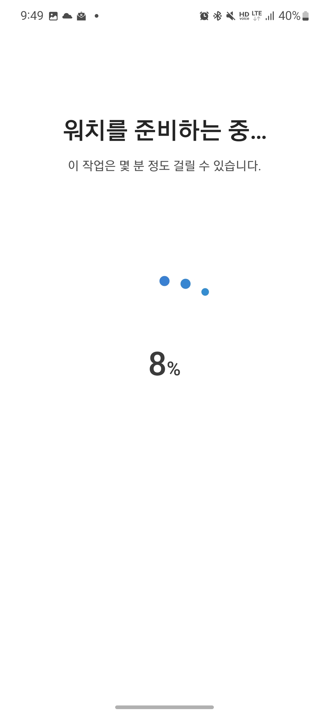 완료 중... 표시가 나오고 얼마 기다리지 않으면 워치4를 사용하실 수 있습니다!