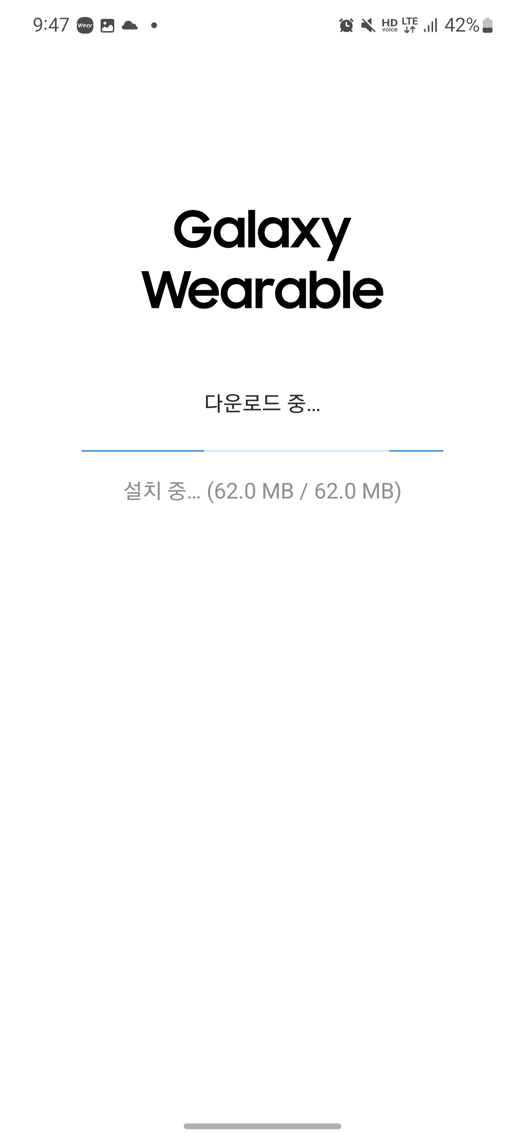 연결을 시작하면 워치4 사용에 필요한 갤럭시 웨어러블 소프트웨어를 다운로드합니다.