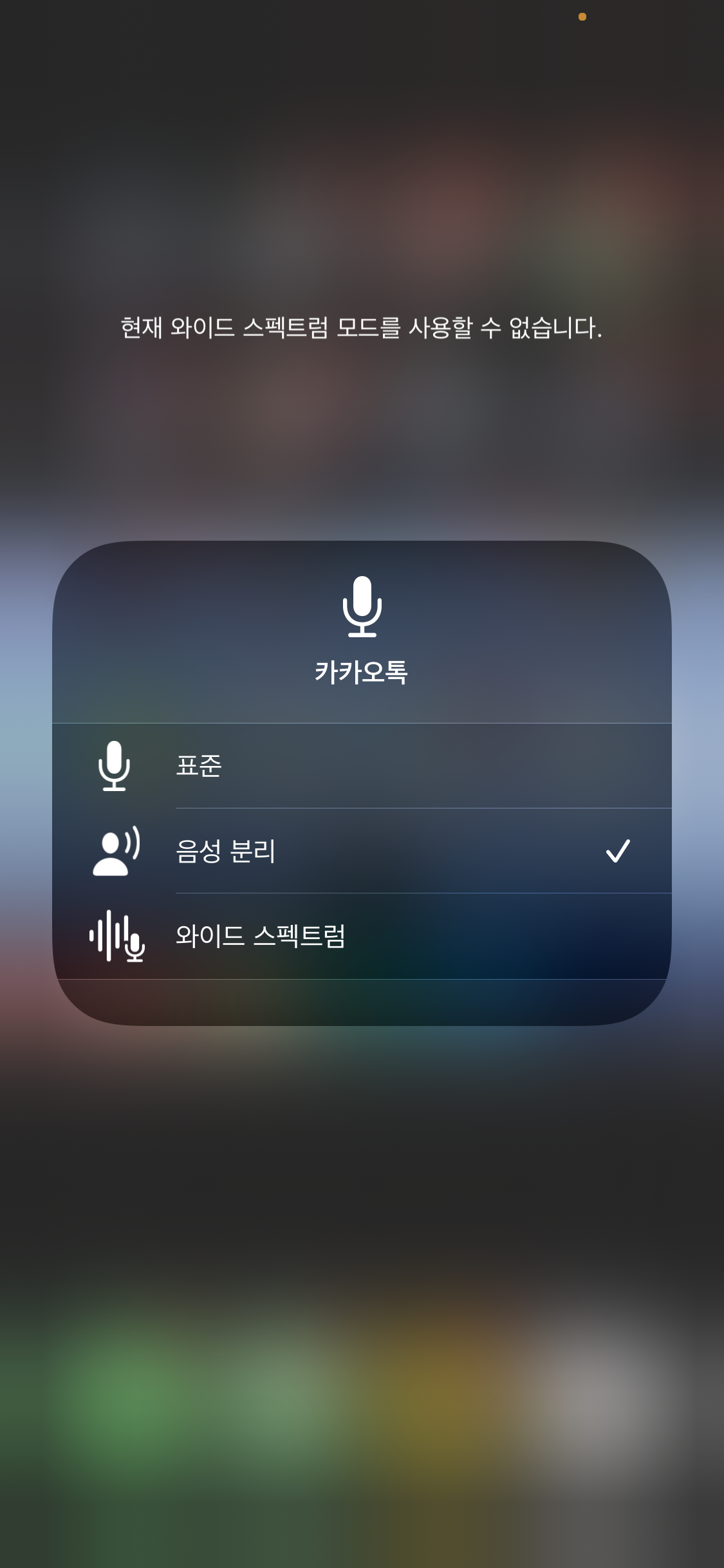 즉, 상대방에게 음성을 전달할 때 주변 소음이 같이 전달된다는 뜻으로 상대방에게 본인의 목소리만 정확하게 전달하고 싶으시다면 해당 마이크 모드를 음성 분리 모드로 변환하셔야 합니다!