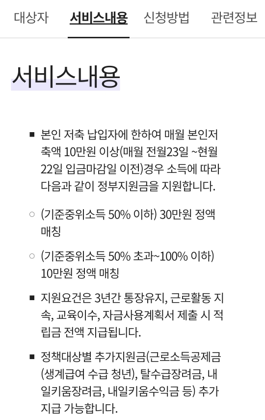 *출처 : 복지로 청년내일저축계좌 / 작성자 : 현하루