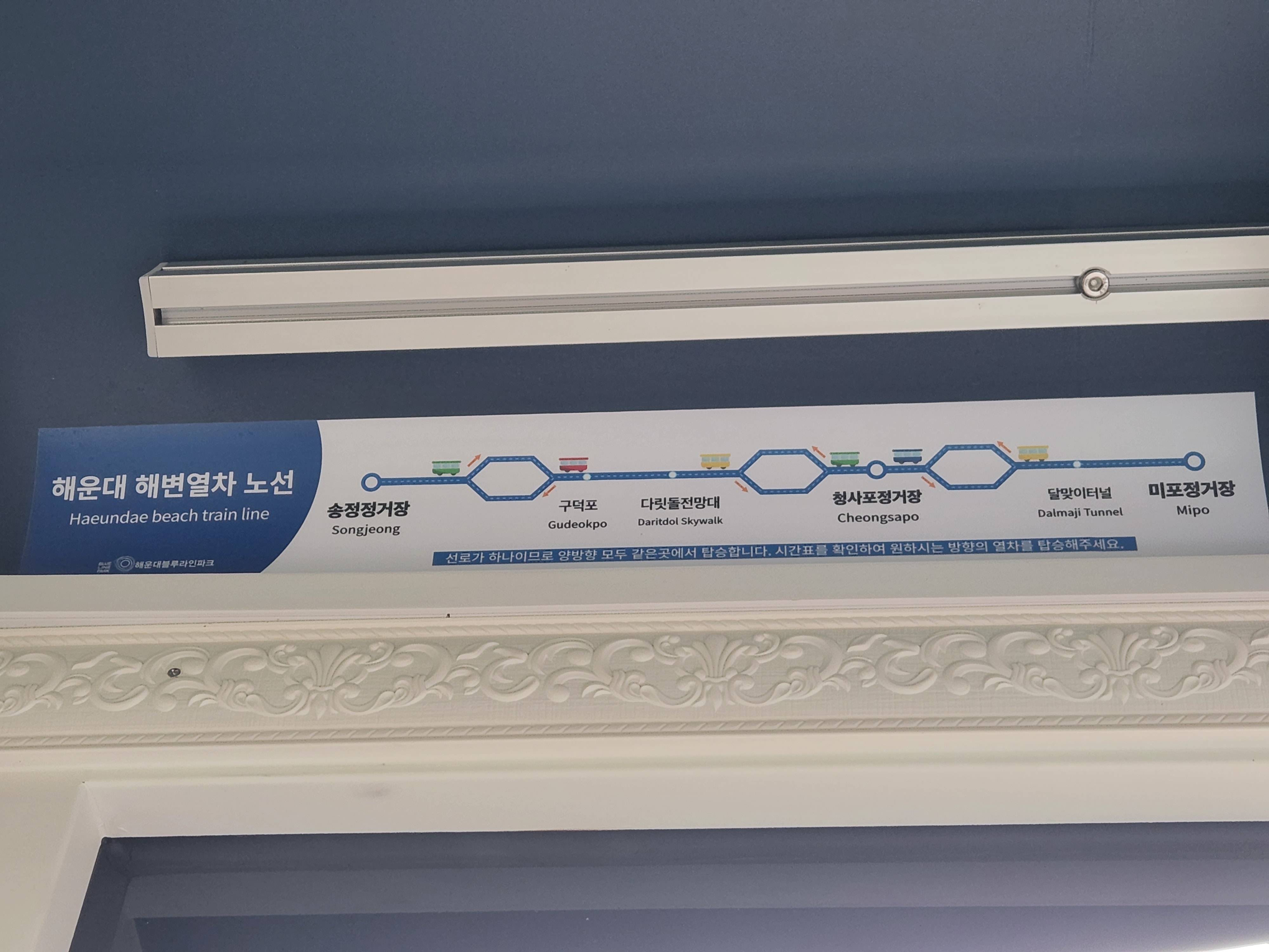 미포정거장 > 달맞이터널 > 청사포정거장 > 다릿돌전망대 > 구덕포 > 송정정거장