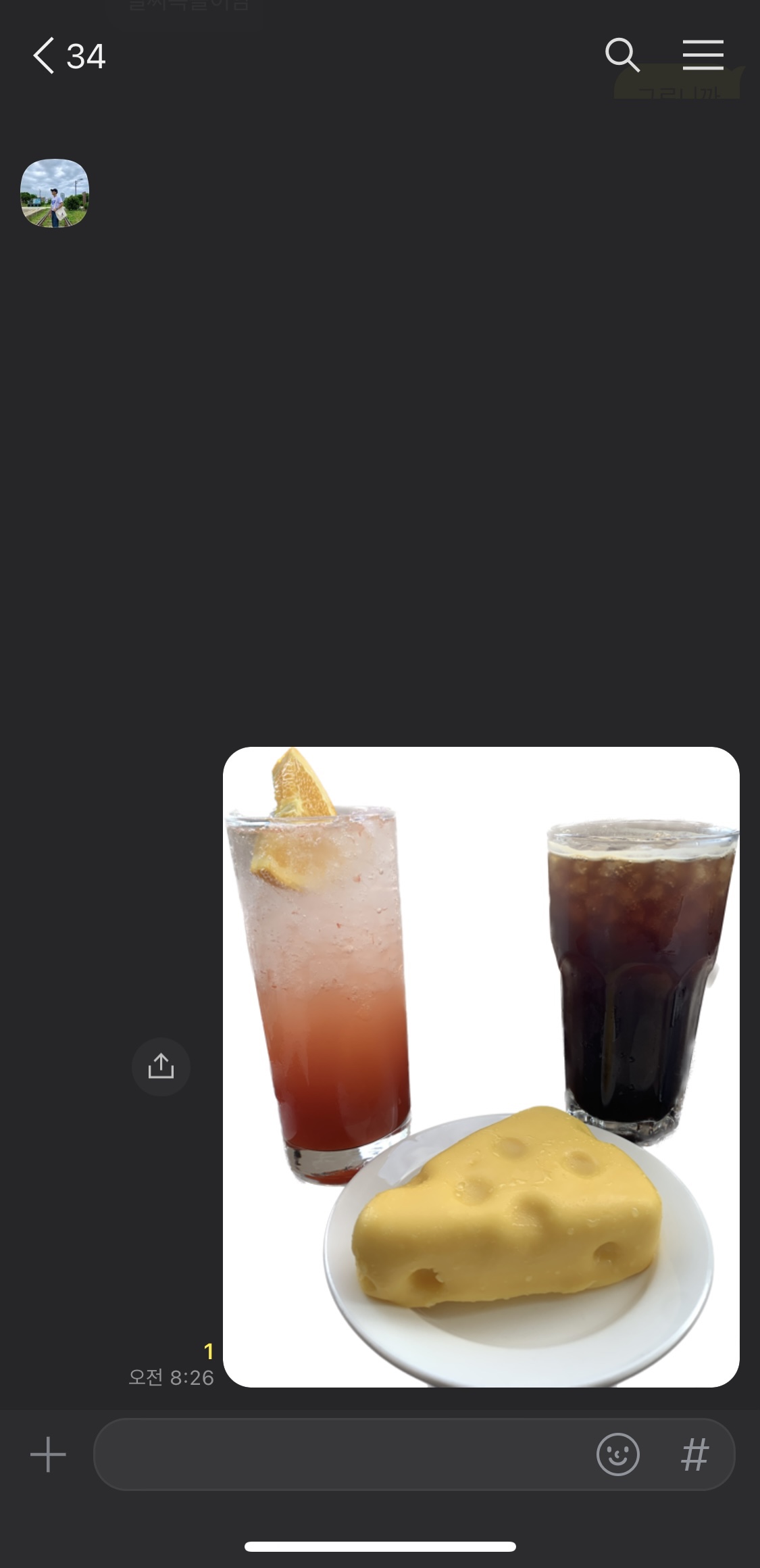 배경이 제거된 사진을 한쪽 손으로 가진채 탭을 이동하여 카카오톡 대화방에 전송해보도록 하겠습니다.