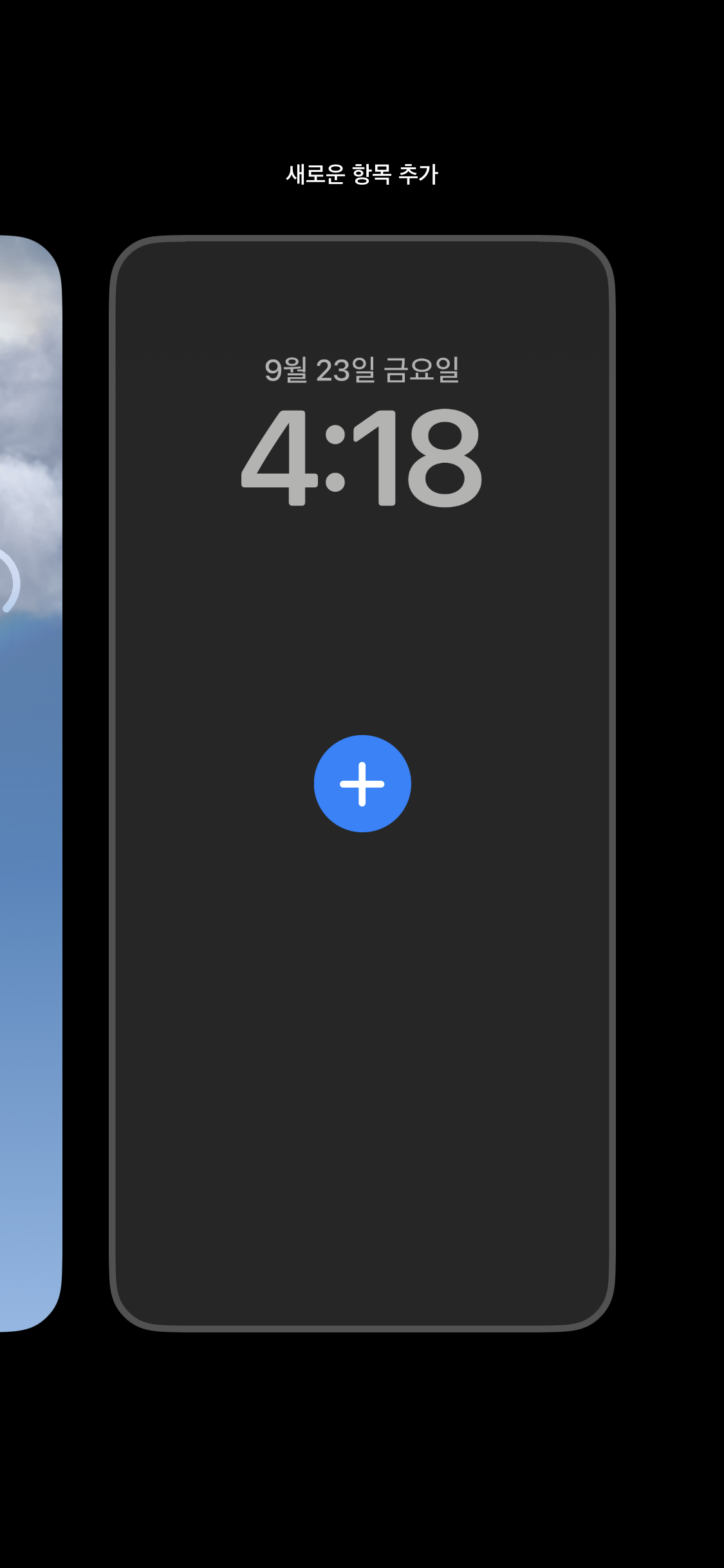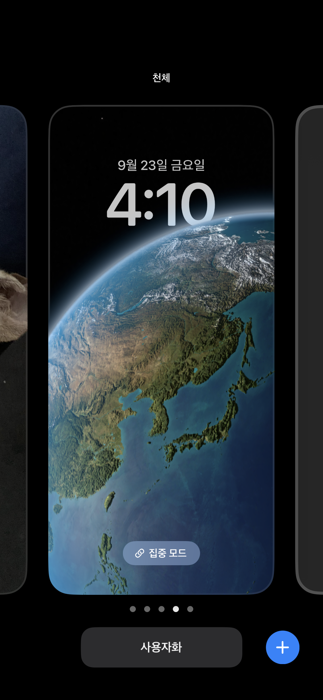 새로운 잠금화면(배경화면)을 추가할 경우 + 모양 버튼을 누릅니다.