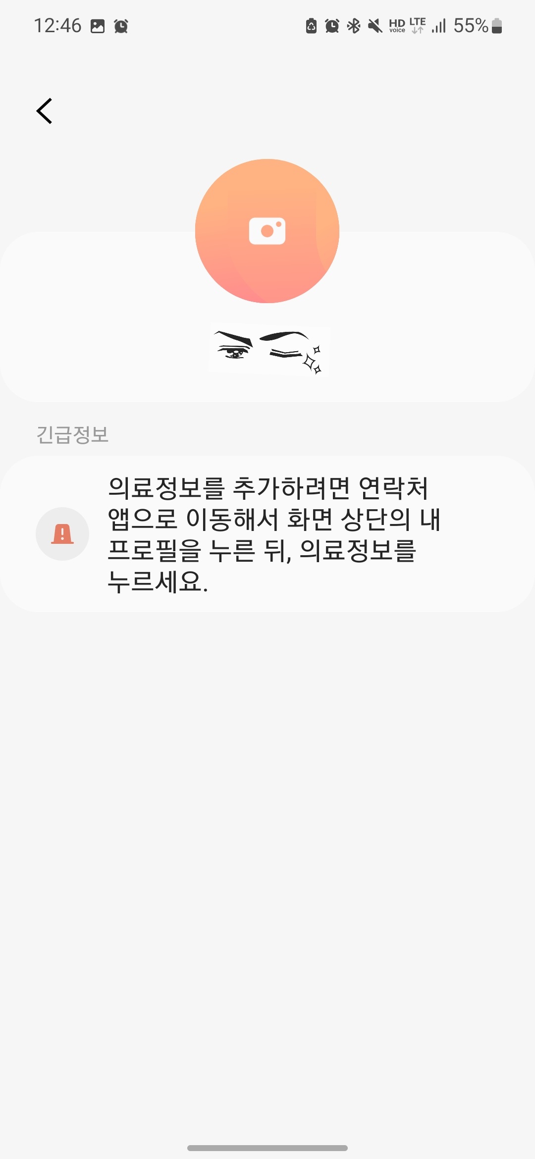 따라서 의료정보 입력을 위해 기본 앱인 연락처 앱을 실행시켜서 본인의 프로필 의료정보를 입력해주셔야 합니다.