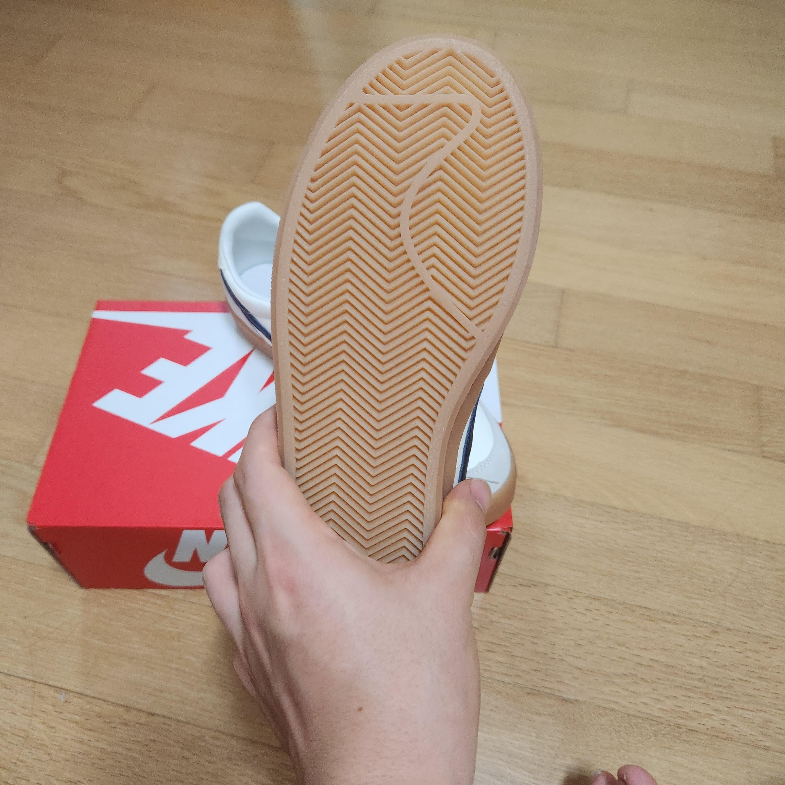 신발 앞부분 쉐입이 둥그스름하면서 약간 날카롭기 때문에 귀여운 무드 + 심심하지 않은 연출을 보여주고 나이키 로고와 아웃솔의 색감이 적당한 무게감을 더해줍니다ㅎㅎ