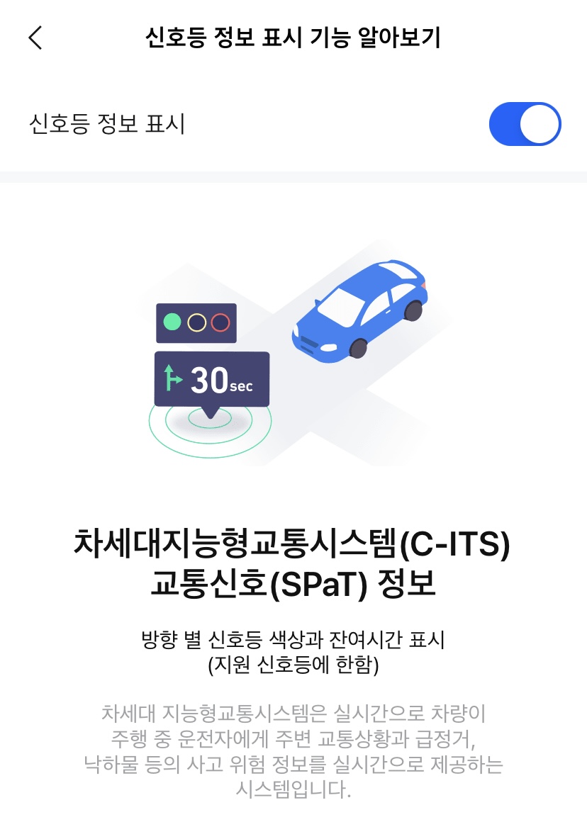 아래 링크로 접속하시면 좀 더 자세한 신호등 정보 표시 서비스 내용을 확인하실 수 있습니다.