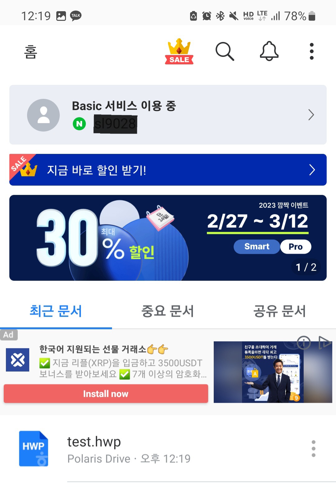 구글 플레이스토어에서 폴라리스 오피스를 다운받은 다음 실행시켜 주시고 작업이 필요한 문서를 열어주시길 바랍니다.