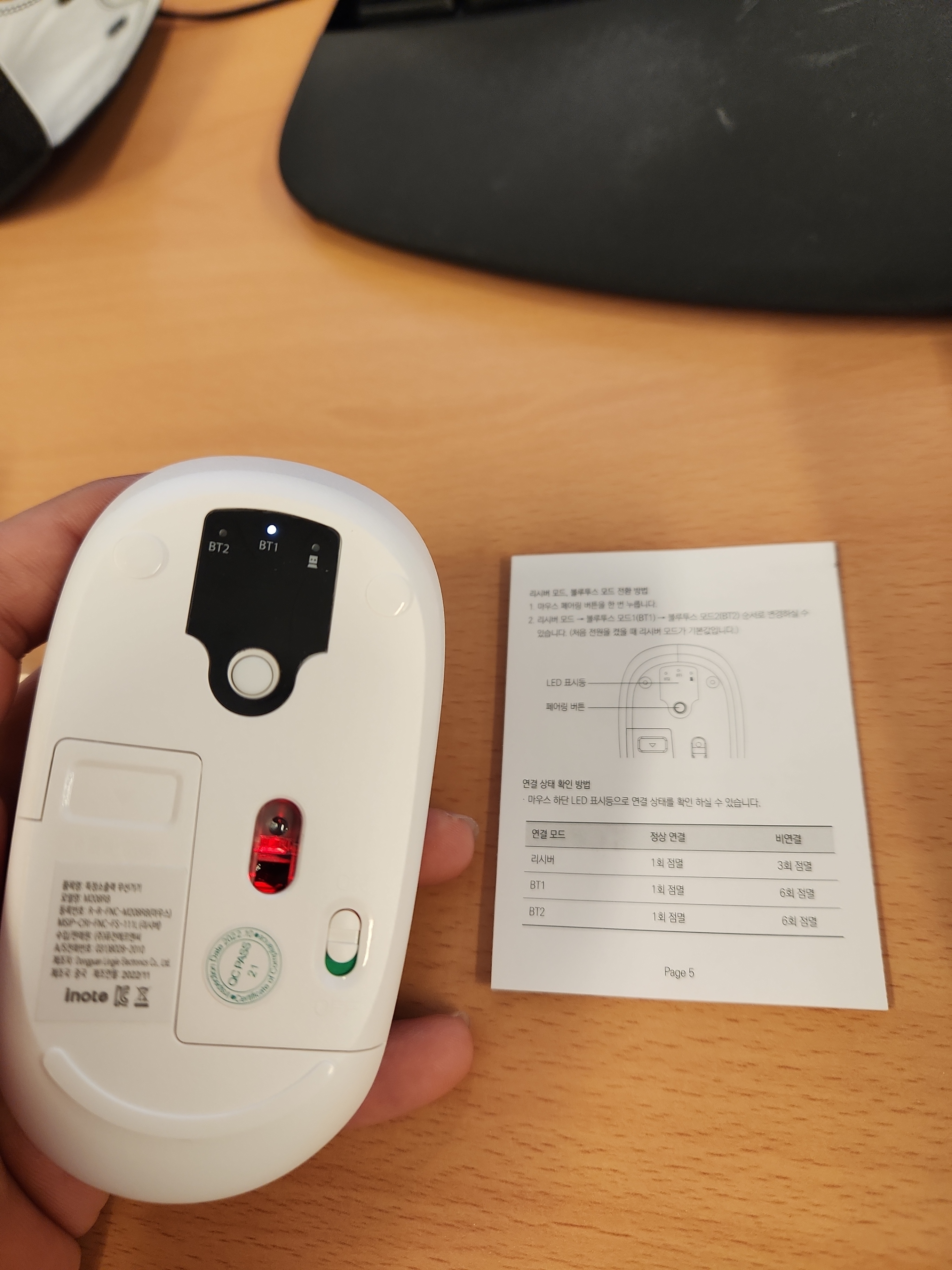 (마우스 바닥에 있는 작은 동그라미 버튼을 누르면 페어링 모드로 전환됩니다.)