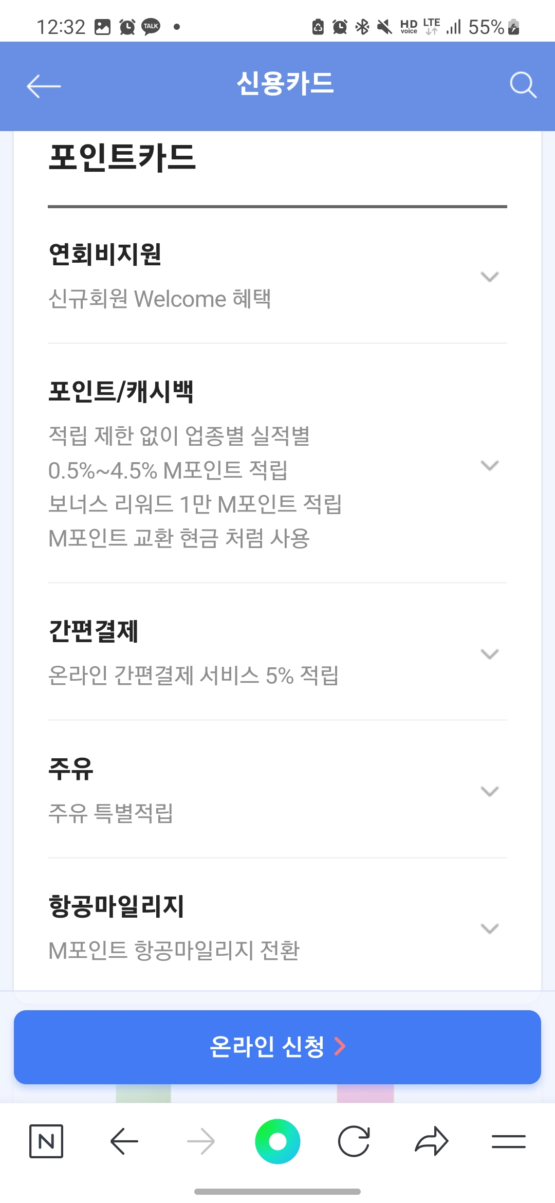 위에서 말씀드린 것처럼 국내, 해외 기준 연회비는 3만 원이고 전월실적은 50만 원 이상입니다.