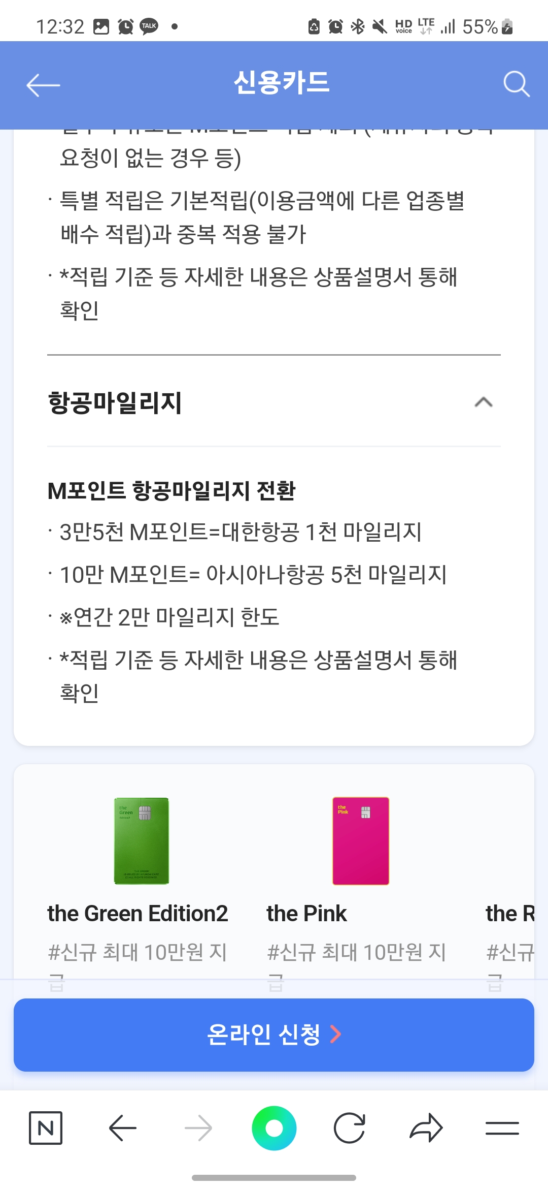 * 2023년 4월 1일 ~ 2023년 4월 31일까지 해당 신용카드 발급 시 신규 발급 조건 충족함에 따라 첫해 연회비 3만 M포인트 적립