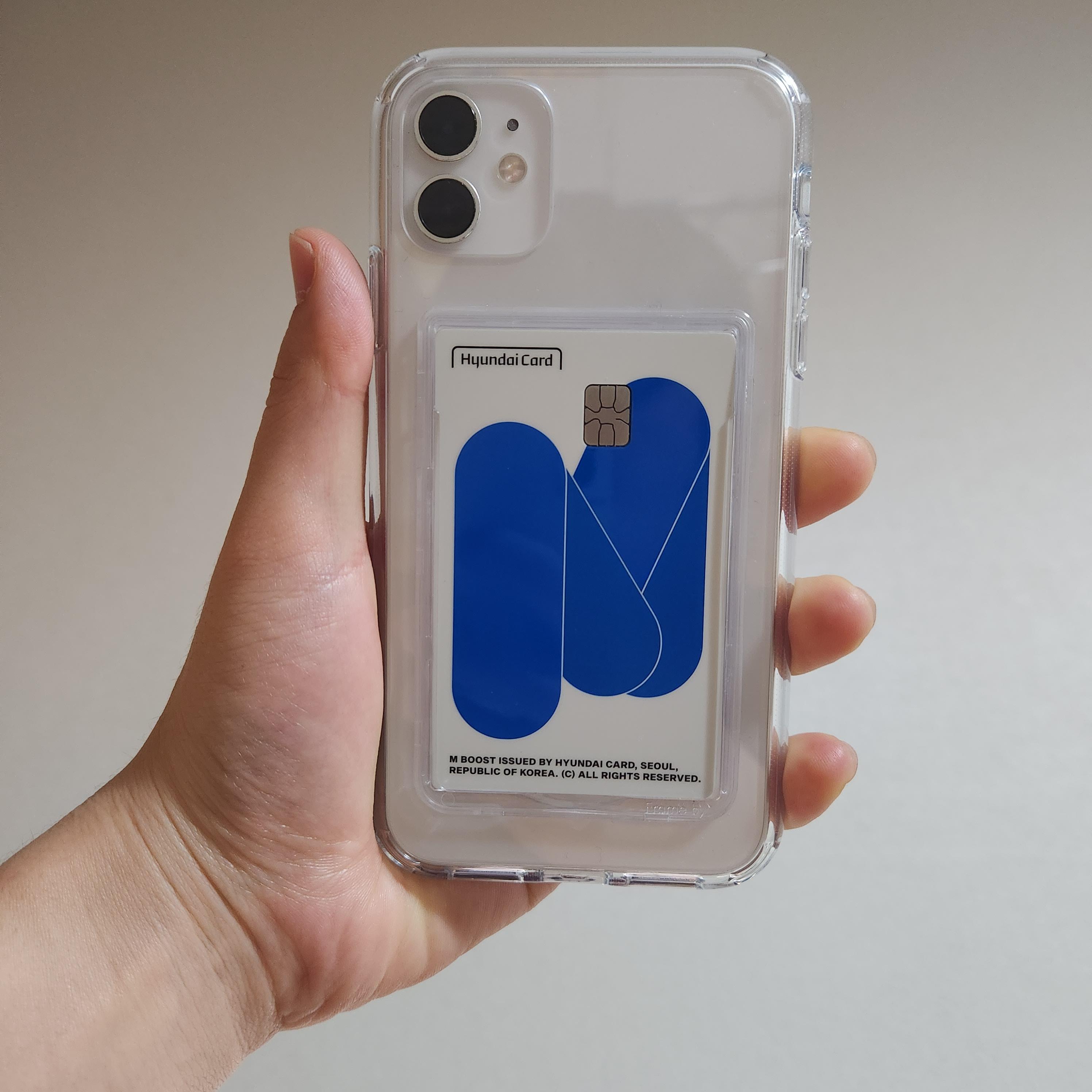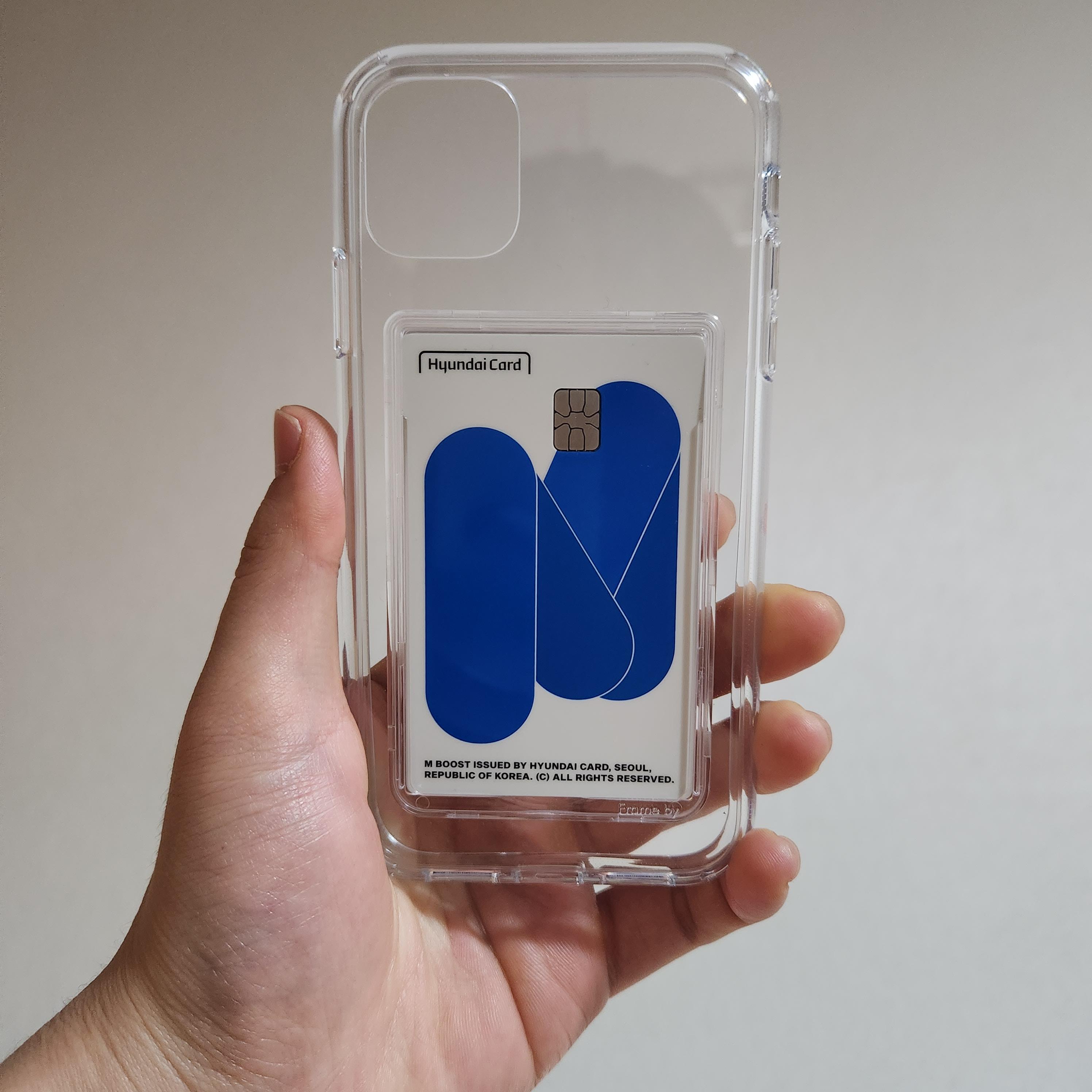 이번에 새로 발급받은 현대카드 M BOOST 카드를 넣어봤는데 케이스를 더 돋보이게 해 주네요 ㅎㅎ