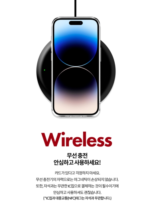 추가로 카드케이스라서 무선 충전이 안 되는 것 아닐까 고민하실 수도 있어서 아래 정보를 안내드립니다~( 케이스를 착용해도 무선 충전 가능 )