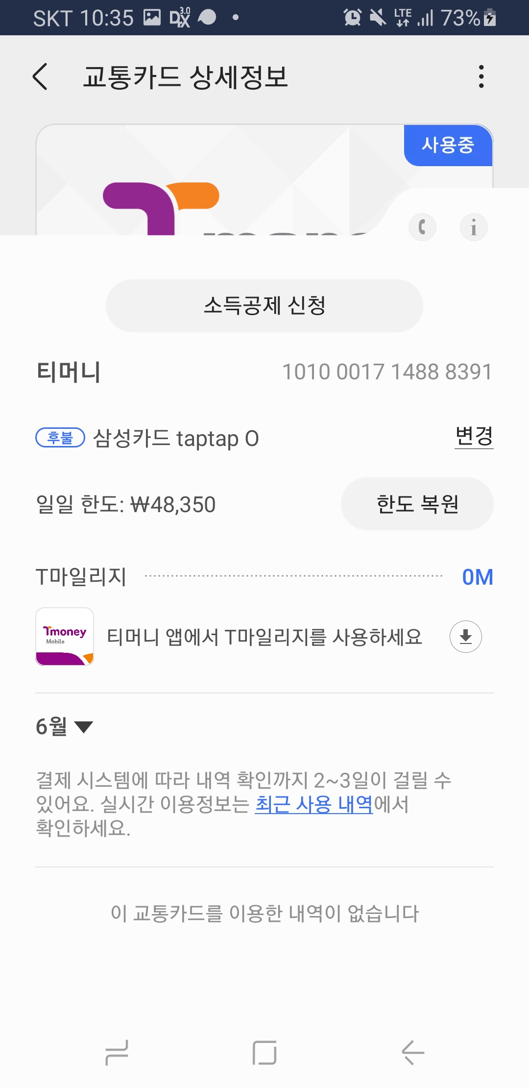 6. 후불교통카드를 선택하셨다면 이제 본인의 카드가 등록된 것을 확인하실 수 있습니다!