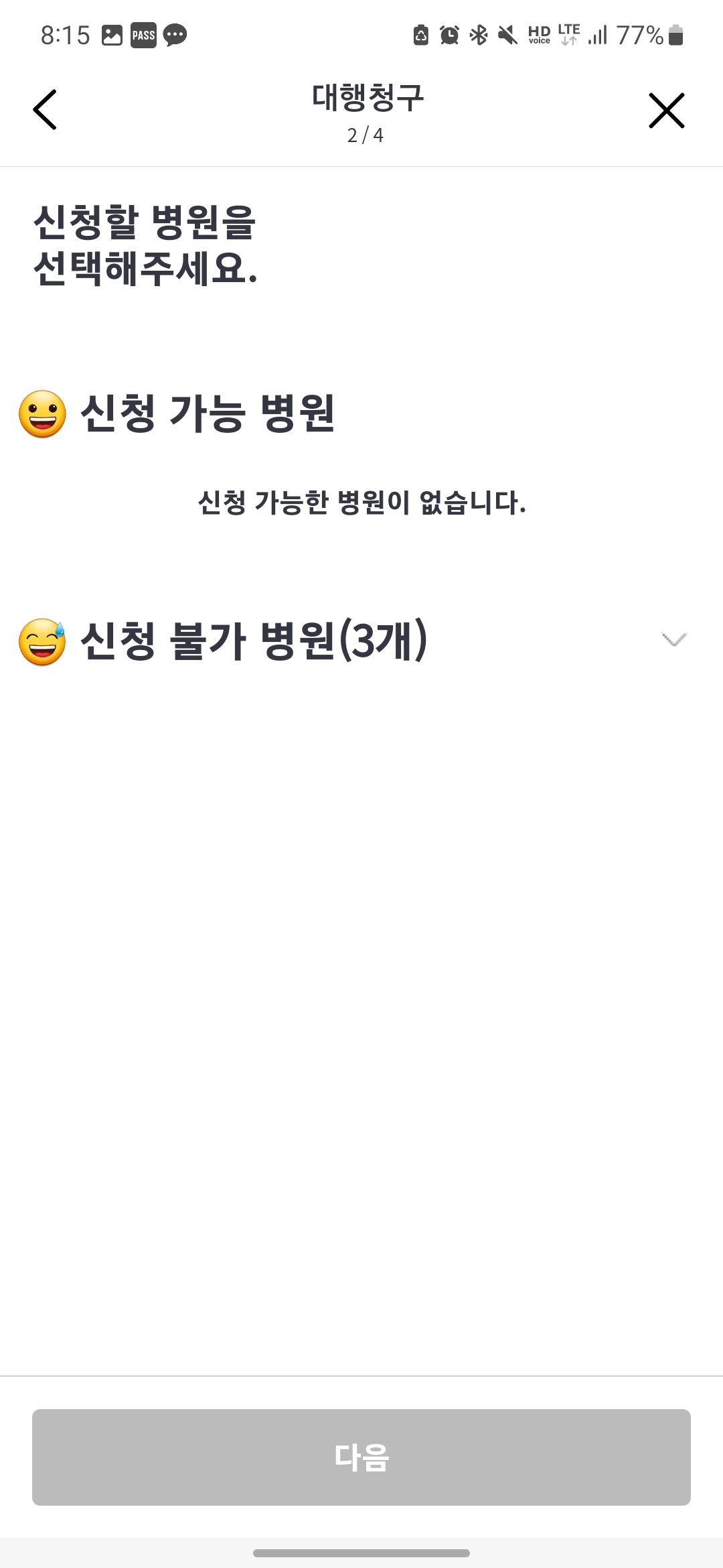 위 절차에서 신청 가능 병원이 있을 경우 선택하고 다음단계로 진행하시면 됩니다.. 저의 경우 돌려받을 보험금이 없어서 추가 진행상황을 보여드리기 어려운 점 양해 부탁드립니다..