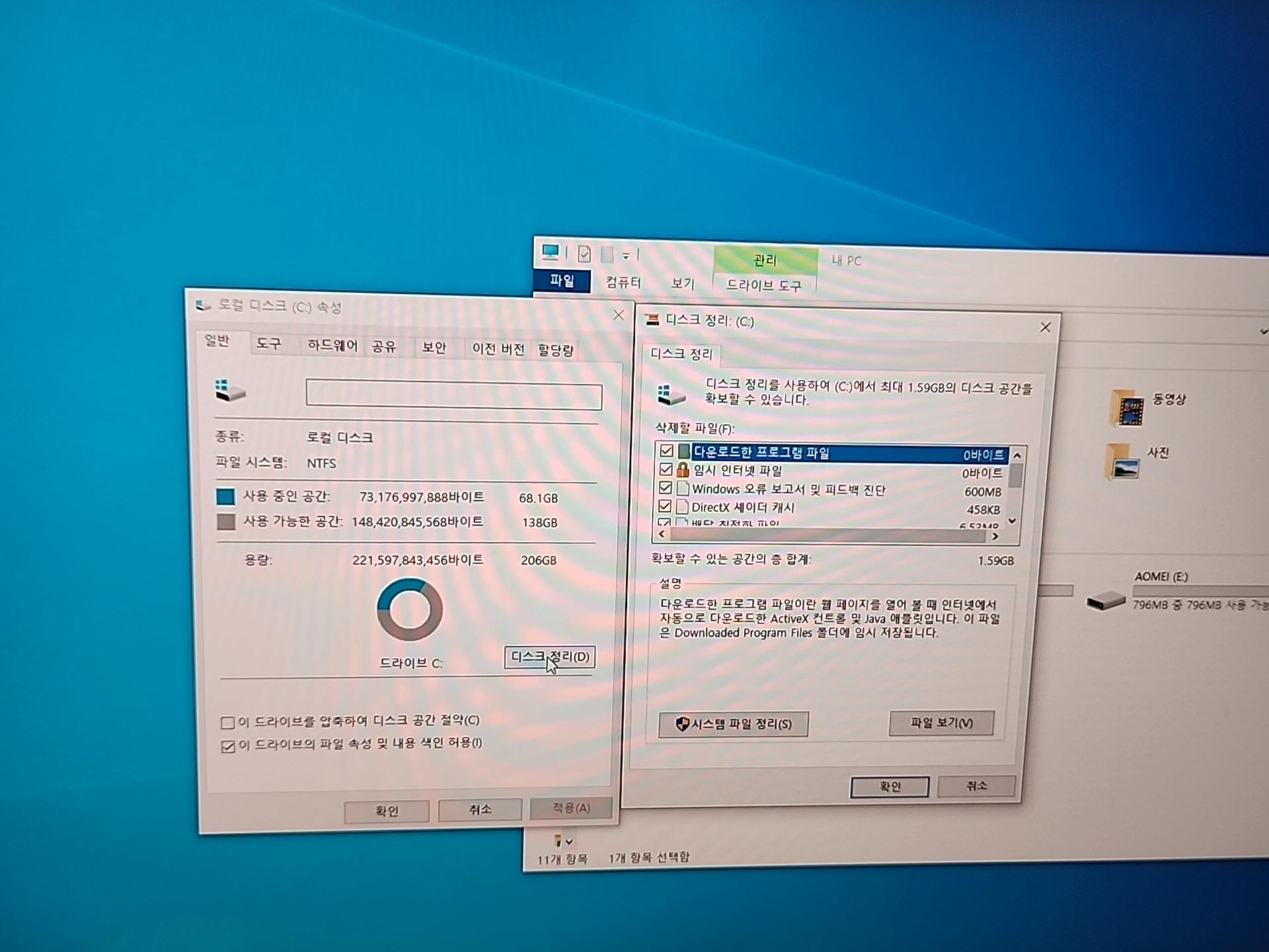 내 PC - 디스크 우클릭(속성) - 디스크 정리