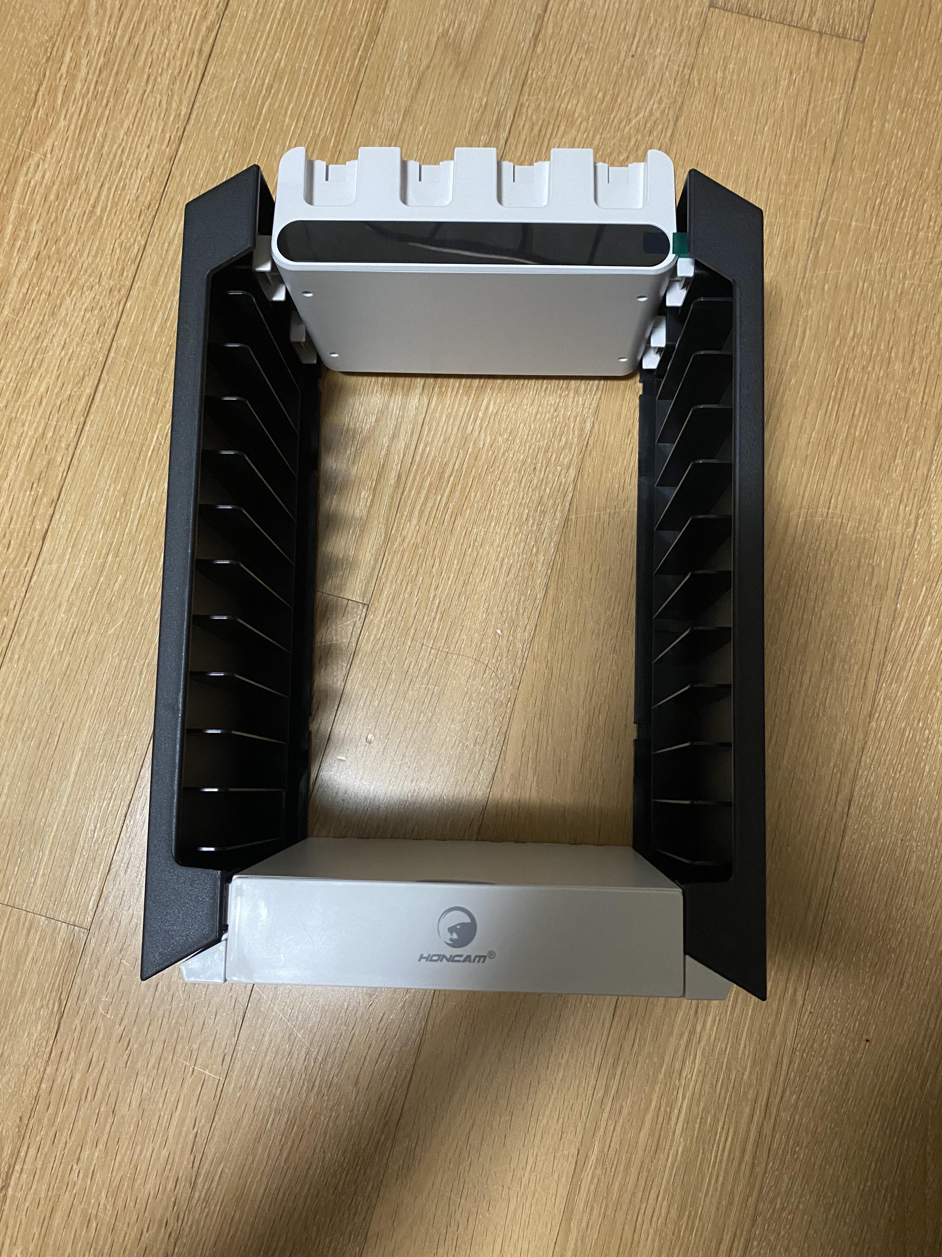 구성품목은 아래 사진에 보이는 것과 같이 충전대와 칩 보관함이 들어 있으며, 어렵지 않게 조립이 가능합니다.