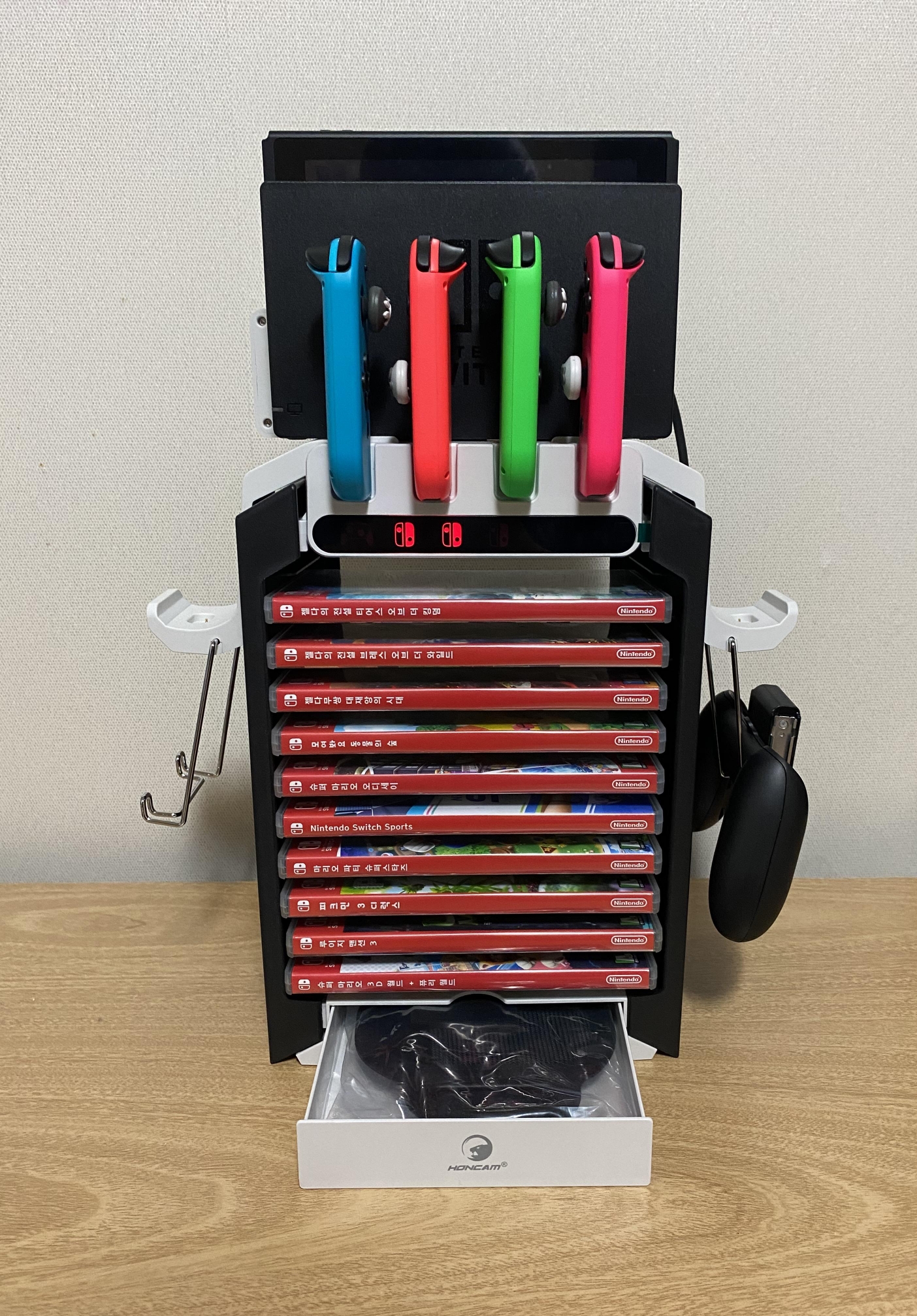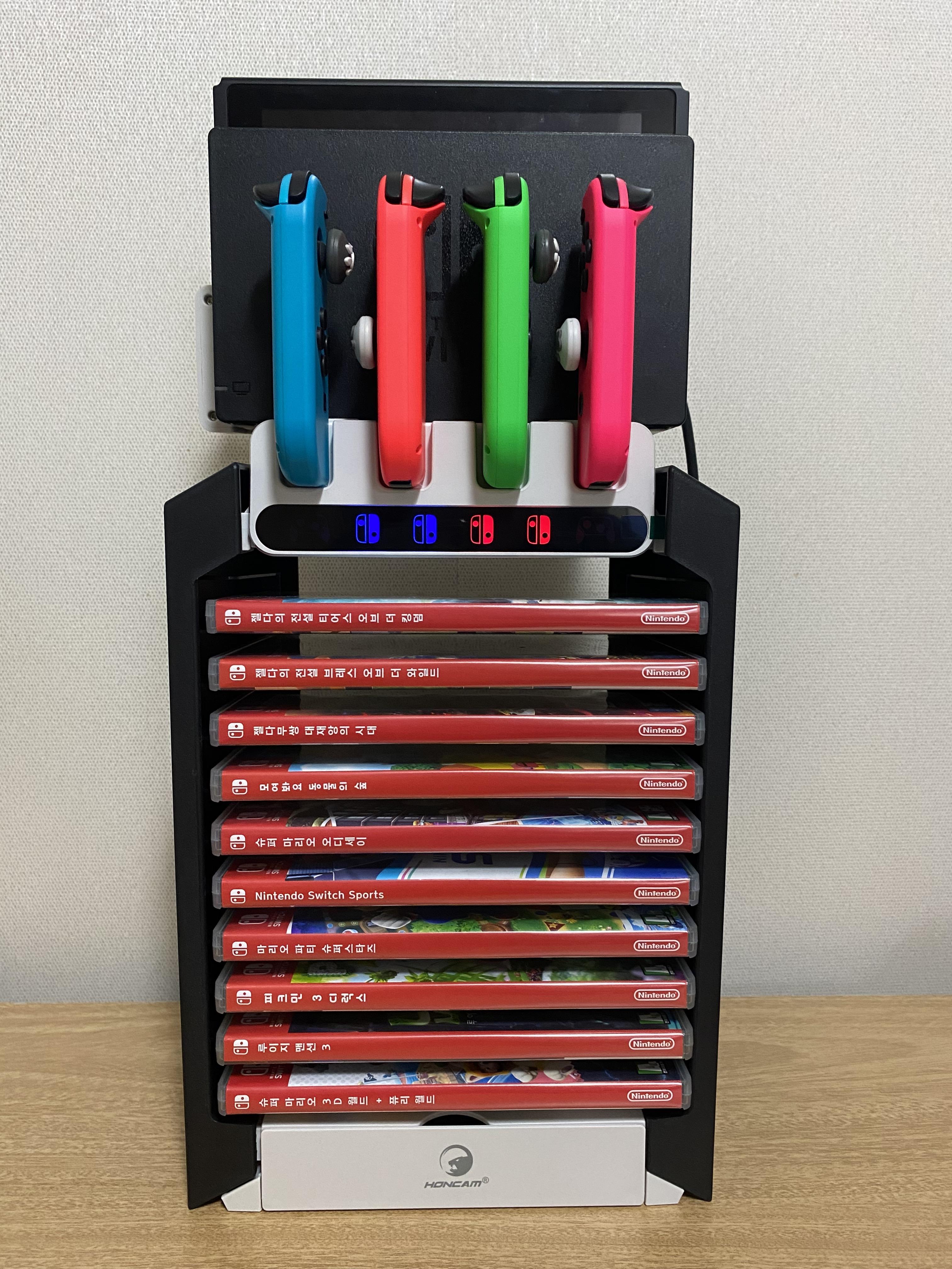 닌텐도 칩과 조이콘, 프로콘을 전부 갖고 있으면 장비들이 은근 자리를 차지하기 때문에 정리하기 골치 아팠는데 9-IN-1 거치대를 사용하니 한 번에 정리가 돼서 너무 편했습니다!