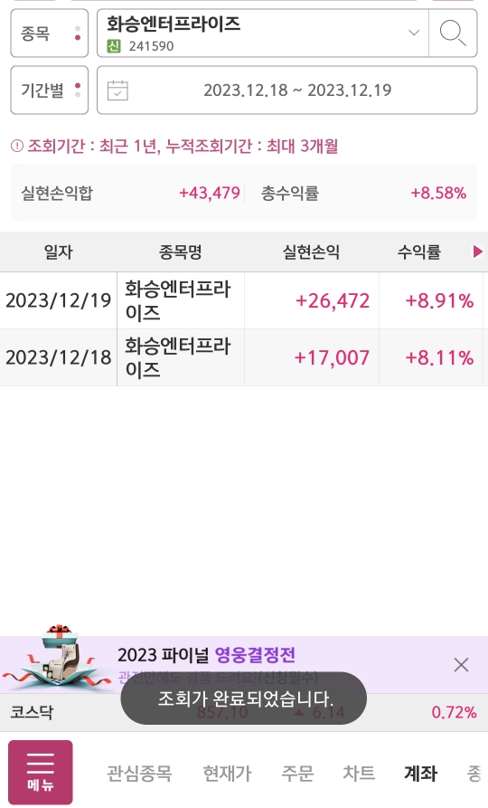 - 플러스 43,479원(수수료 1,241원) (+8.58% )