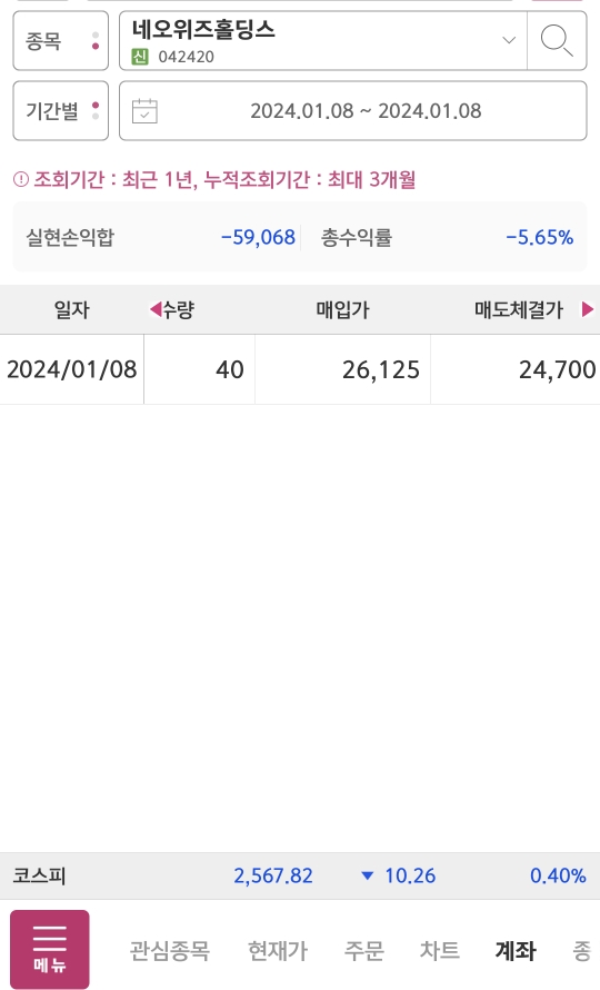 - 12월 산타랠리때 수익을 많이 봐서 부담없이 투자하자는 마인드로 3개 종목을 기대심리로 들어갔던 것 같다. 물론 타점을 계산안한건 아니지만, 기존에 엘리어트 파동 + 224 눌림에서 반등나와야 했던 주가가 약반등 이후 계속 빠졌고, 거래량이 기하급수적으로 떨어져 시장의 관심을 받지 못했다. 이때 추가매수가 아닌 손절을 일찍 잡았어야 했는데 과거 올랐던 기억이 발목을 잡았던 것 같다. 12월 수익을 한번에 뱉어버리니 기분이 이상하지만, 한 번더 손절의 중요성과 시장 흐름에 맞게 투자 타점을 잘 잡는 것이 포인트 인 것을 느꼈다.