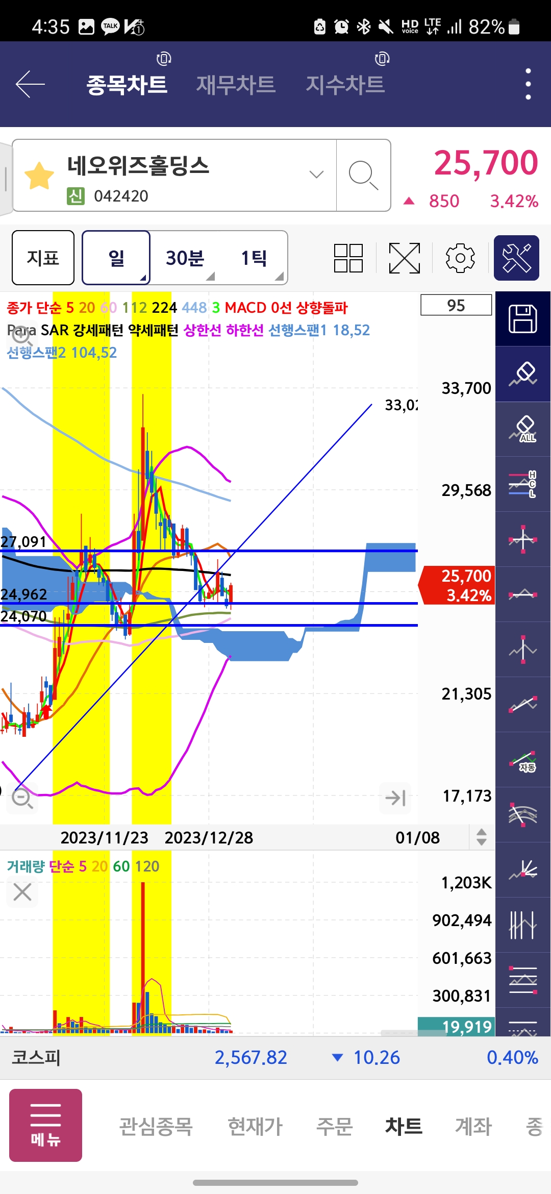 - 급등이후 224일선 눌림및 엘리어트 파동으로 기술적 반등을 예상 / 기업실적 전반적으로 나쁘지않고, 주가가 급등이후 빠지면서 거래량이 확 줄었음 / 결재, 독감, 게임 테마 / 10~15%