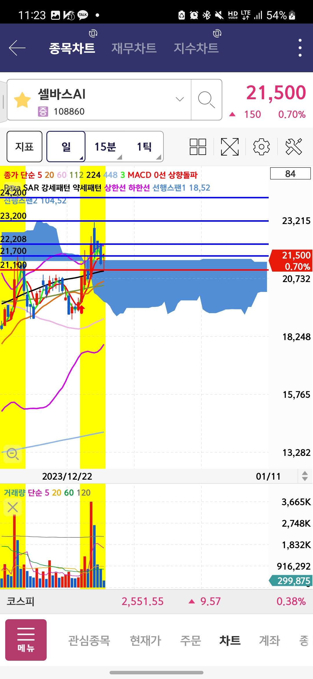 - 셀바스AI > 3-5일선 눌림목 매매 / 장대양봉 + 거래대금 1000억이상 + 안정적인 시가총액 + 장대양봉이후 거래량 반이상 감소 / AI테마주 / 23,200원 , 24,200원 분할매도