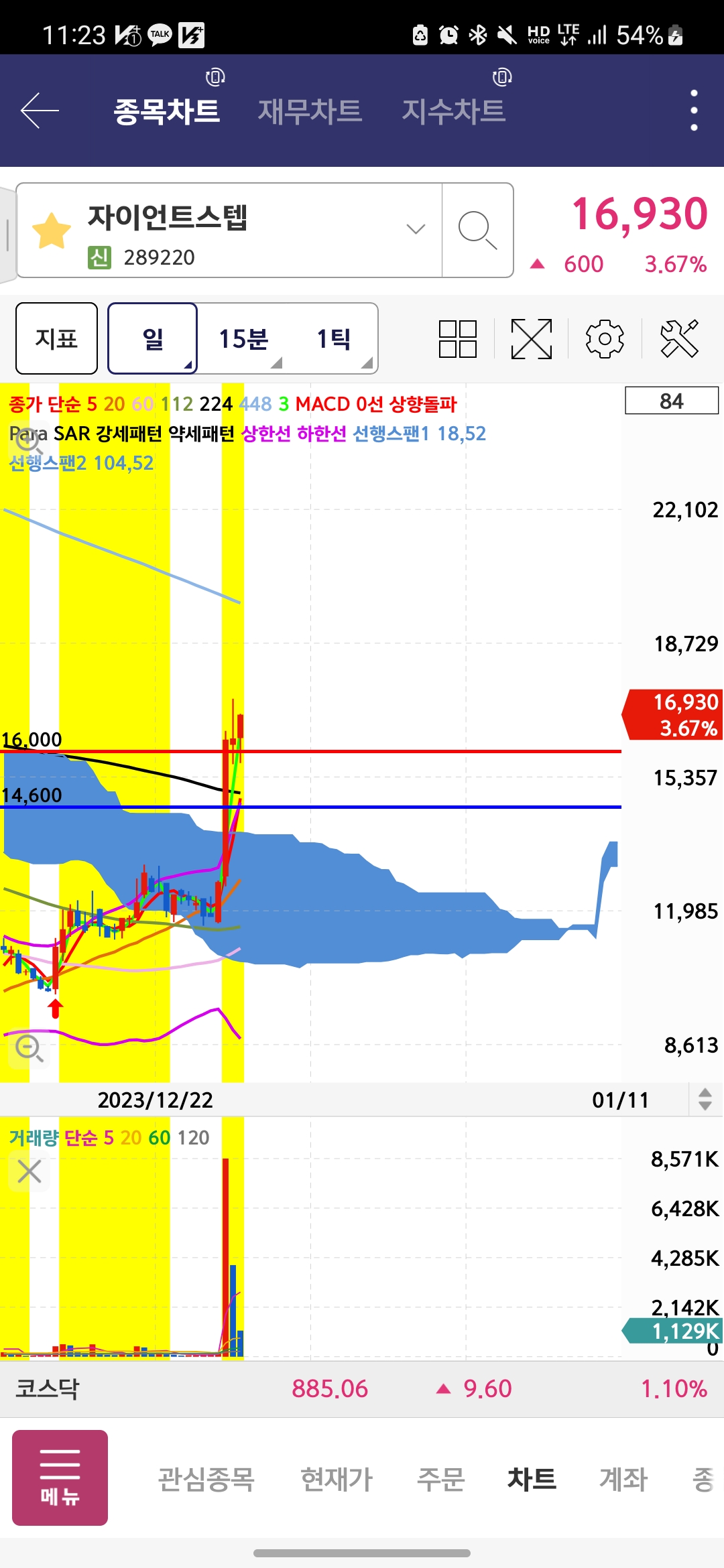 - 셀바스 AI는 장대양봉 이후 눌림 관점에서 5일선을 이탈하지 않고 거래량이 빠지고 있어서 특정 손절가격대만 지켜준다면 올라갈거라고 생각했는데 스탑로스 걸어둔 금액에서 반등이 나오고 현재가는 다시 전일 종가 정도에서 보합중이다. 매수금액이 커서 손절가가 타이트 했던 것이 영향이 있었고, 아무래도 익숙하지 않은 매매법인데 약간의 뇌동 기질이 들어갔던 것 같다.