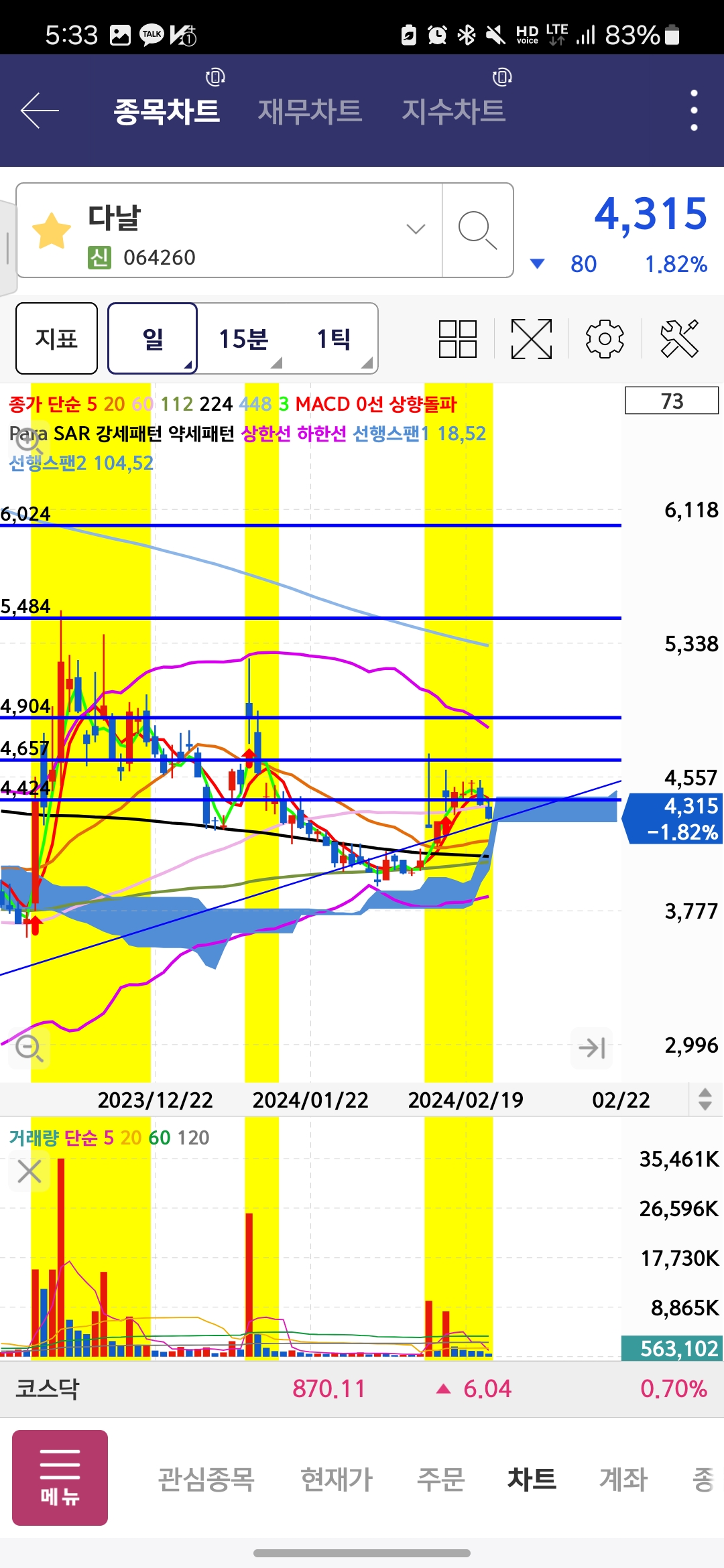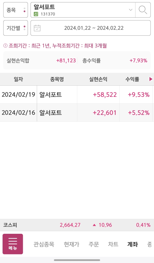 | 주식 매매일지 224일선, 448일선 눌림목 매매 ( 국순당, 케이엠더블유, 알서포트) (3) | 2024.02.16 |