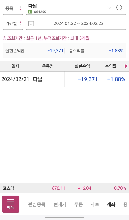 - 다날 마이너스 2만원 + 알서포트 플러스 8만원 = 플러스 6만원 약 6프로 수익