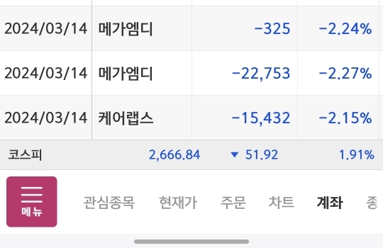 | 주식 매매일지 60일선 눌림목 매매 + 추세반등 ( 팬오션, FSN, HLB바이오스텝, 메가엠디, 이엠넷 ) (2) | 2024.03.08 |