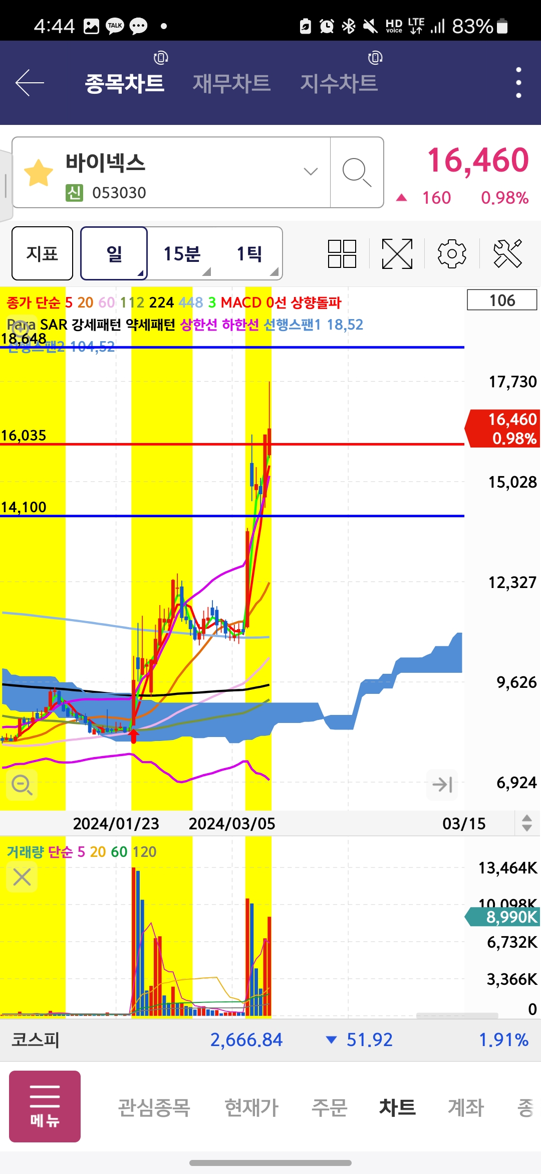 - 바이넥스 > 5일선 돌파매매 / 수급에비해 주가가 많이 빠지지않고 지지해줌 / 바이오 / 10%