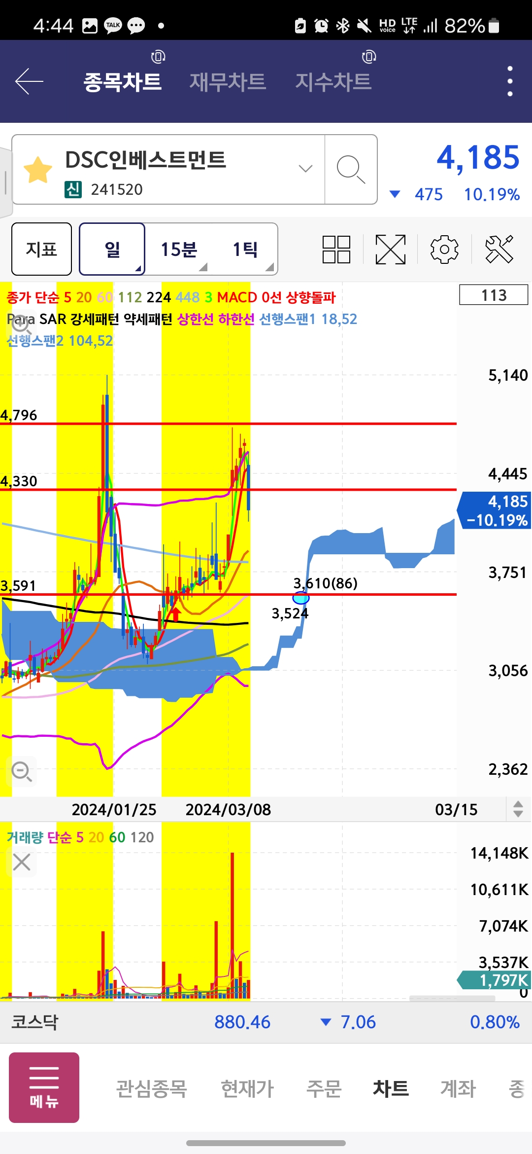 돌파매매의 경우 순환매를 고려해서 분산으로 투자했는데 이도저도 아니게 약손절을 했다. 분봉상 원하는 타점이 아니면 하지말아야한다. 지금 수익이 지속적으로 나고 있어서 자신감이 붙은거 같은데, 한순간에 골로 갈 수도 있겠다.