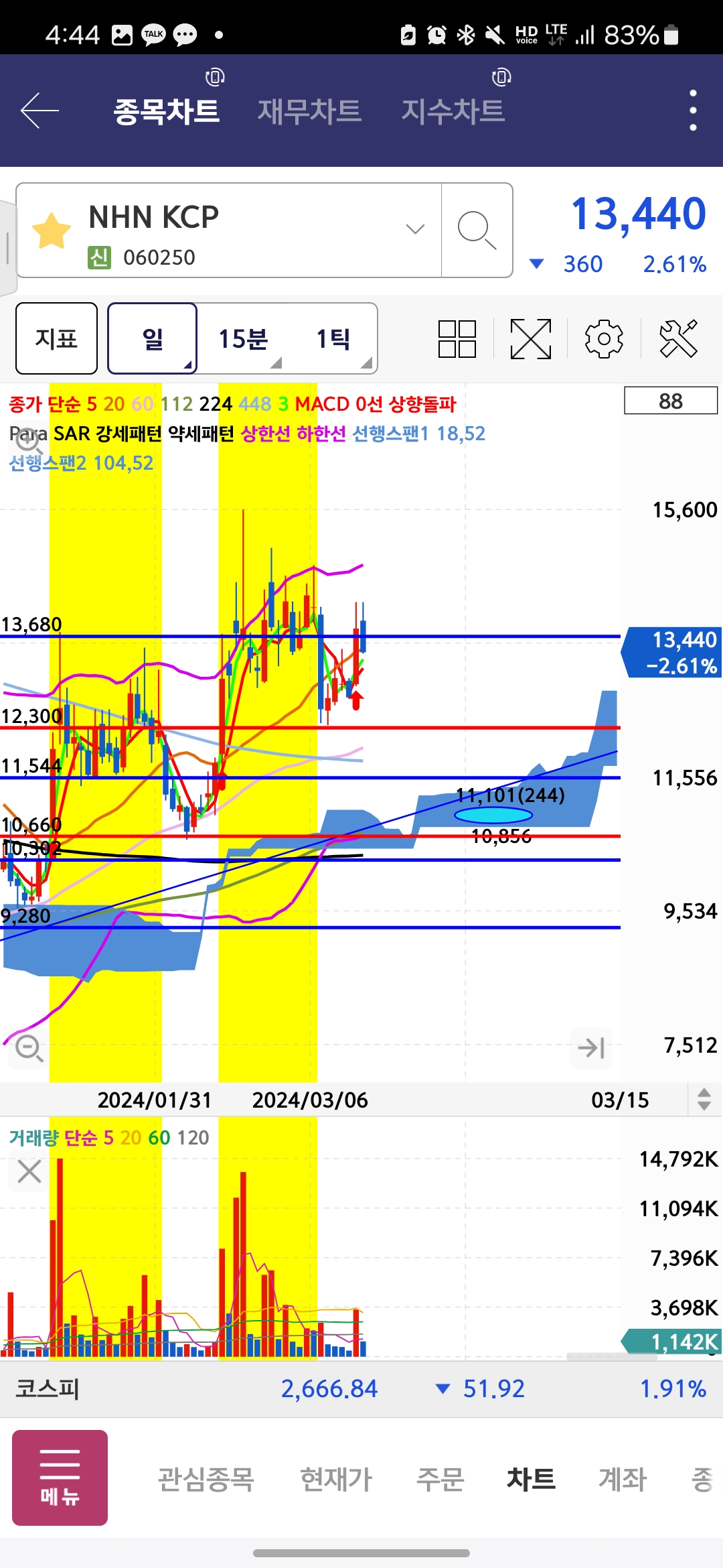 - NHN KCP > 60일선 지지 / 상승추세 및 60일선 지지하는 것을 보고 선취매 / 결재테마 / 10~15%