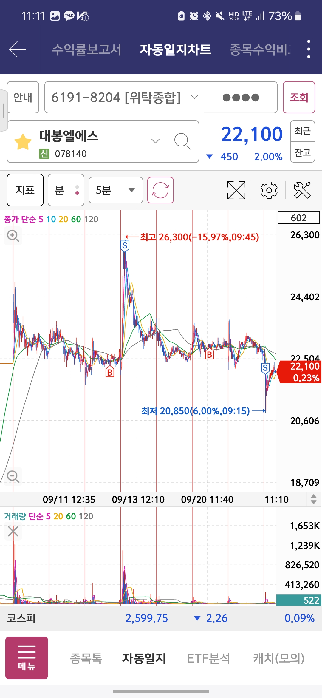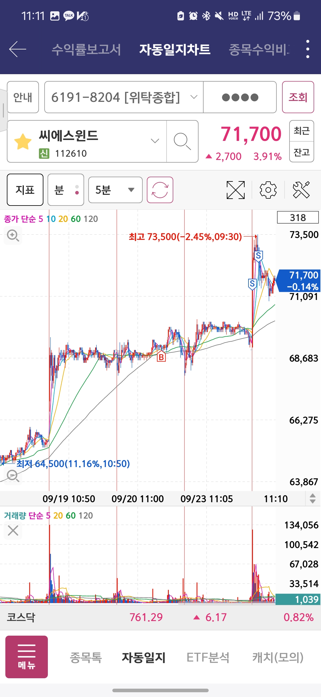 단기 눌림타점은 이렇게 반복하도록 하고, 스윙종목으로 1~2개 모아가면 좋을 것 같다.