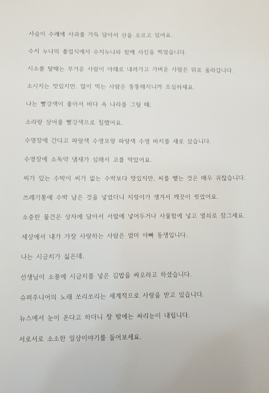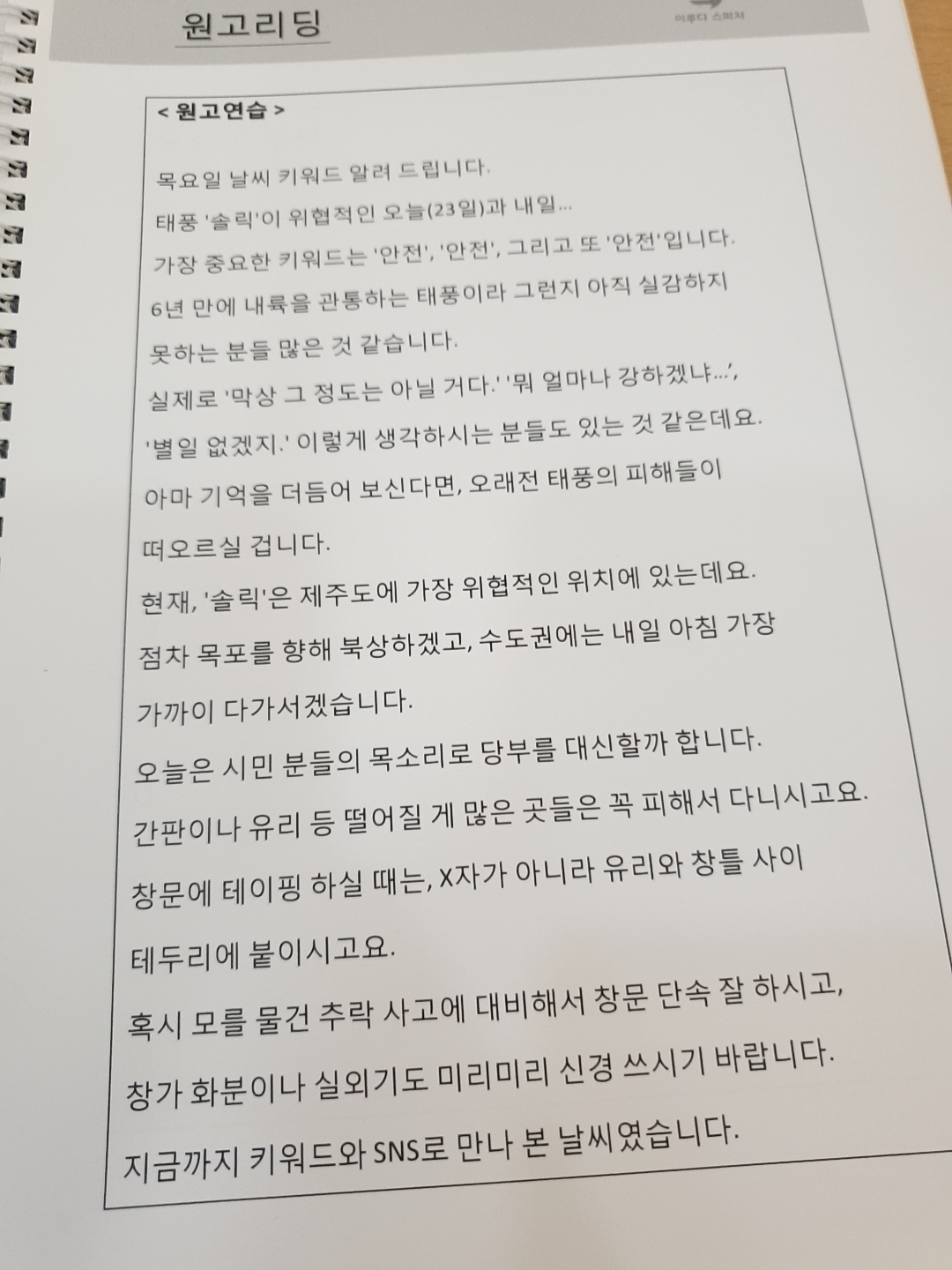 발음교정원고입니다! ㅅ,ㅈ,ㅊ,ㄹ 발음 연습이 잘 되셨다면 원고에서 실수없이 읽는 연습을 반복하셔야 합니다. 여기까지 오셨다면 이 단계도 금방 끝내실거에요ㅎㅎ