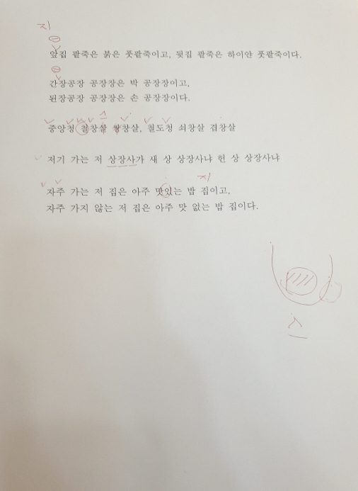 발음교정문장(ㅈ,ㅊ단어로 된 문장)
