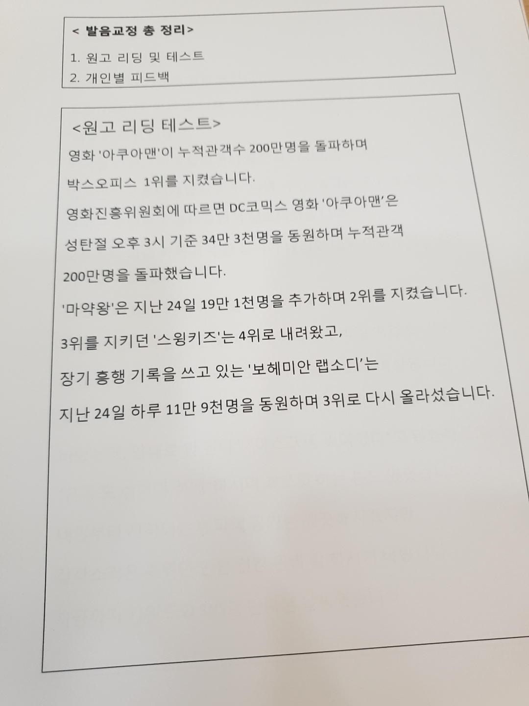 오늘은 발음교정 연습 단어, 문장, 원고를 모아서 여러분들께 공유하려고 합니다!