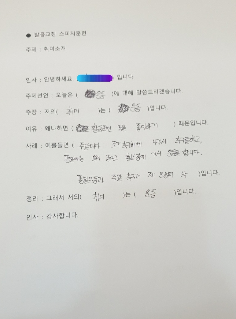 이루다스피치 발음교정(2개월 과정) 5주차 후기!