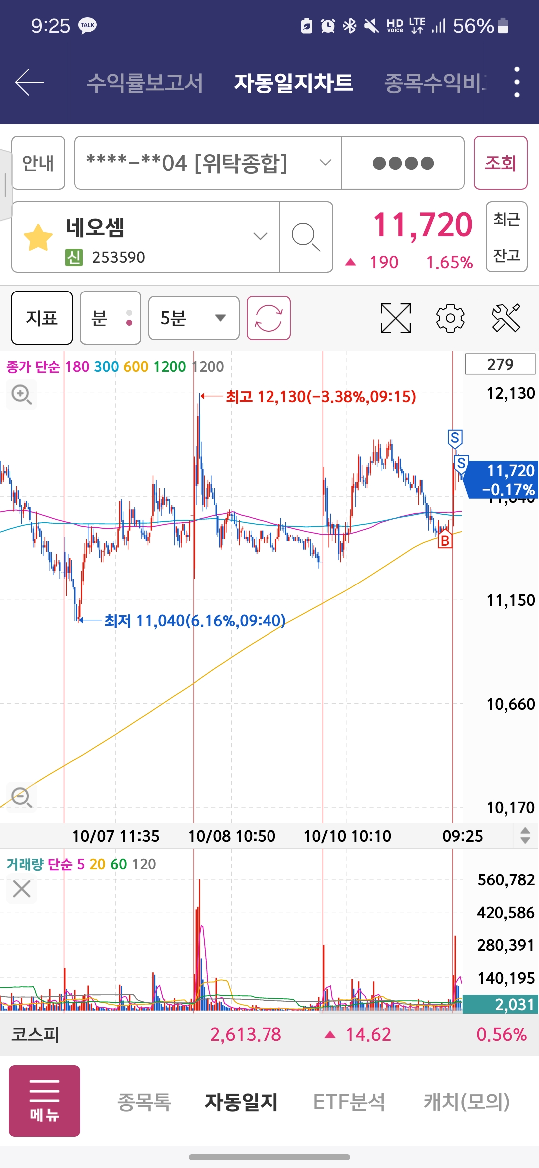결과는 성공적이었고 네오셈과 마찬가지로 3% 절반 익절 나머지 5분봉 마감 이탈 시 익절하여 쏠쏠한 매매를 하였다.