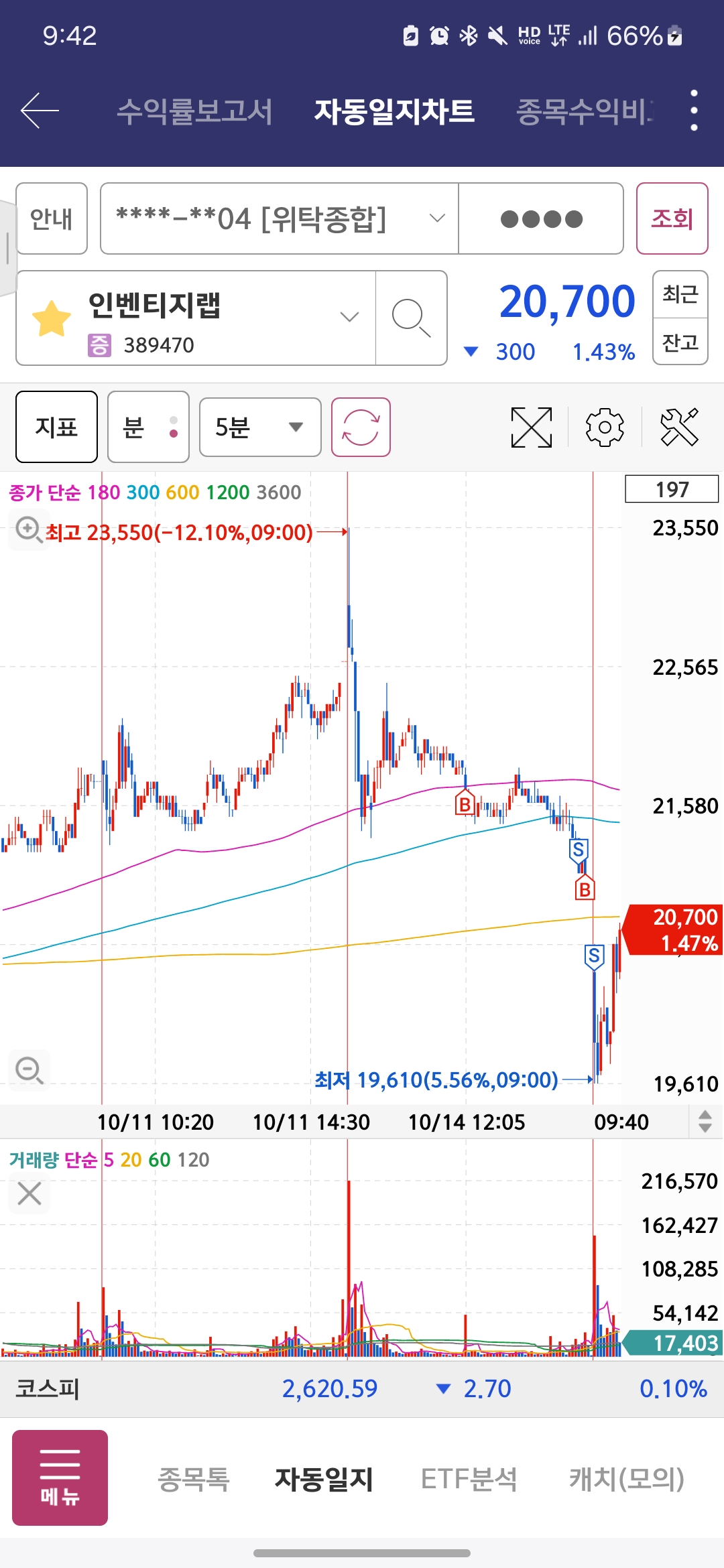 10일선 눌림 + 비만치료제 테마로 첫 10일선 눌림자리라 종가에 다시 들어갔는데 오늘 비만치료제 출시 소식으로 차익실현 매물들이 매도를 부르면서 쭈욱 빠졌다. 나는 시가에 바로 손절쳤고 현재 확인해보니 다시 매집이 되고 있더라..