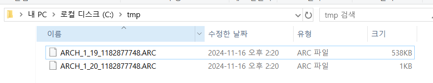 아카이브 모드로 만들고 alter database archivelog; 하면 아래 사진처럼 arc 파일 만들어짐.