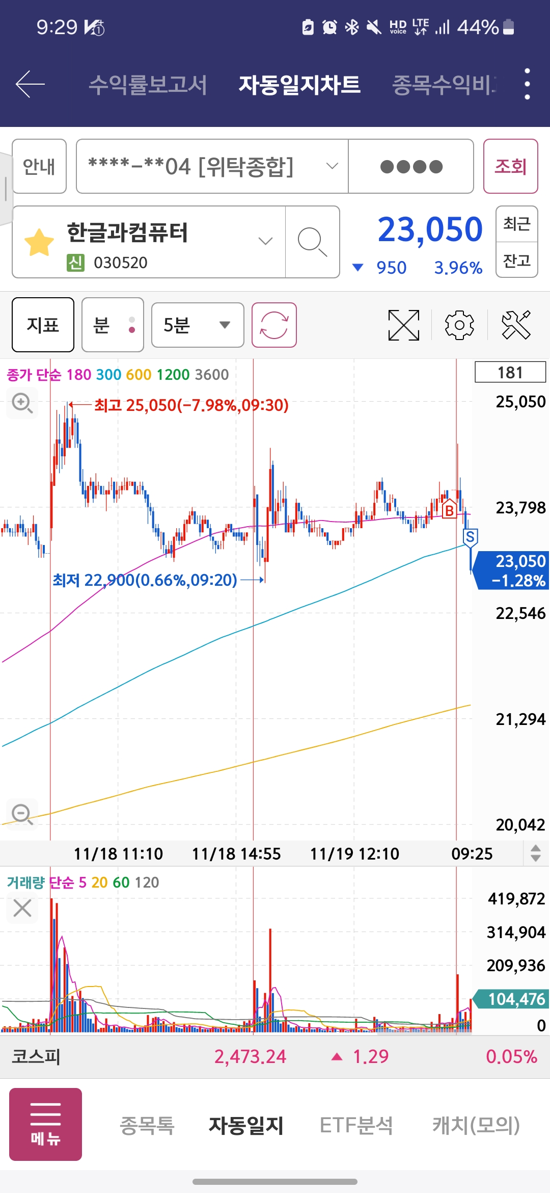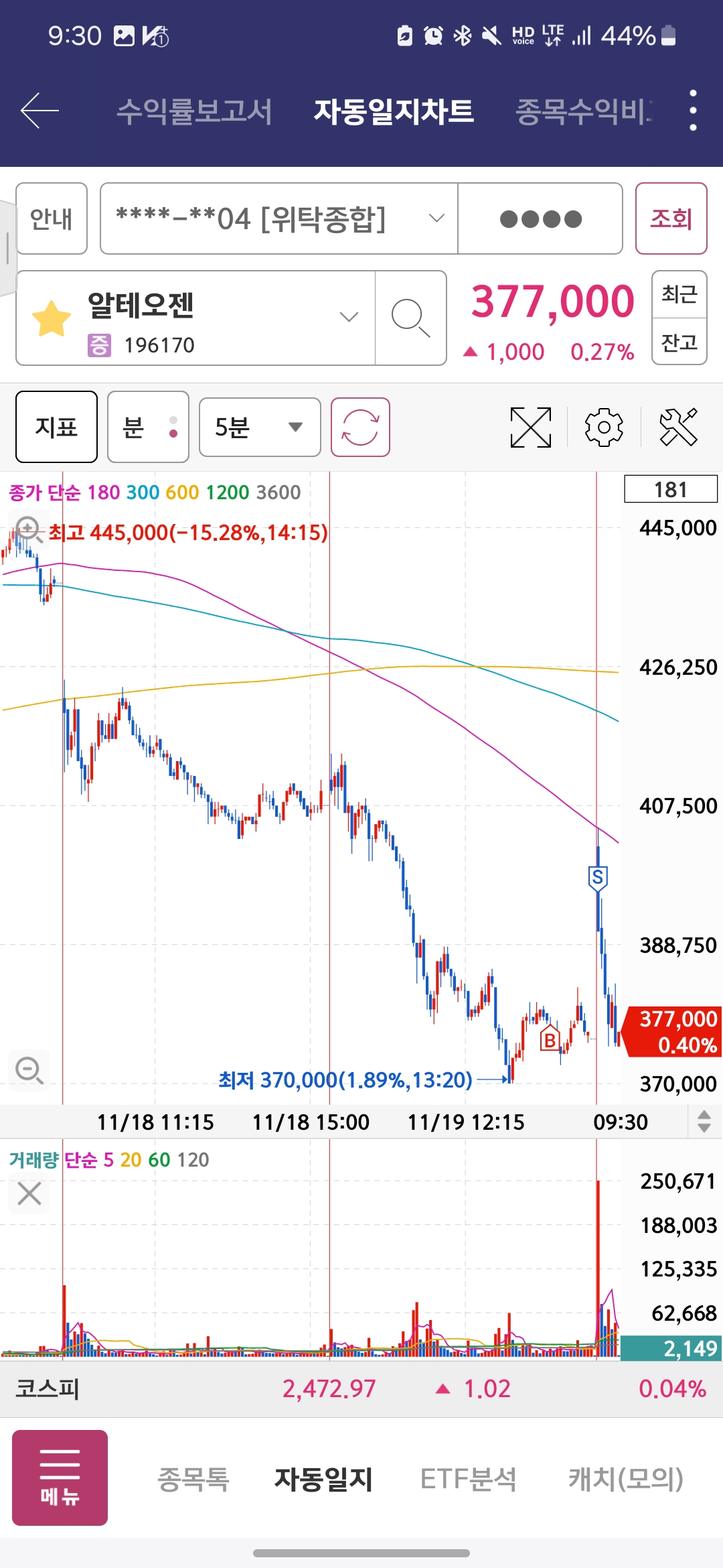 두 종목 합쳐서 어쨋든 수익이라 오늘도 못한 매매는 아니고, 이렇게 테마가 다른 종목을 나눠서 손익비와 리스크를 관리하는 습관이 중요하다.