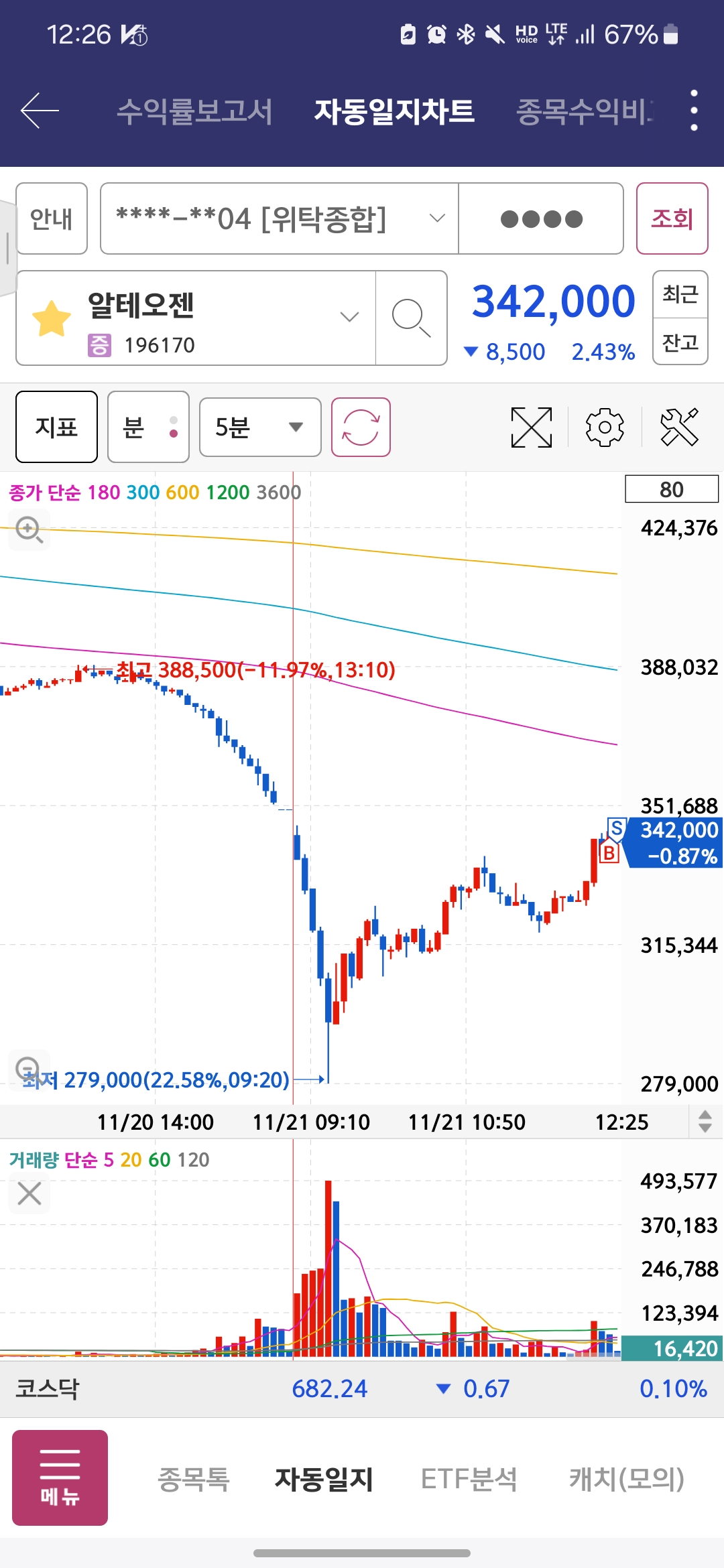 주가 조작도아니고; 무슨 20프로까지 빠졌다가 지금은 양전한 상태임ㅋㅋ 단타하려다가 저 시점에 매수세가 더 안들어오는거 같아서 짧게 약손절 쳤는데 지금은 더 많이 올랐더라.. 단타는 어렵다~ 안하던거 하지말아야하는데 손이 가네 ㅠ
