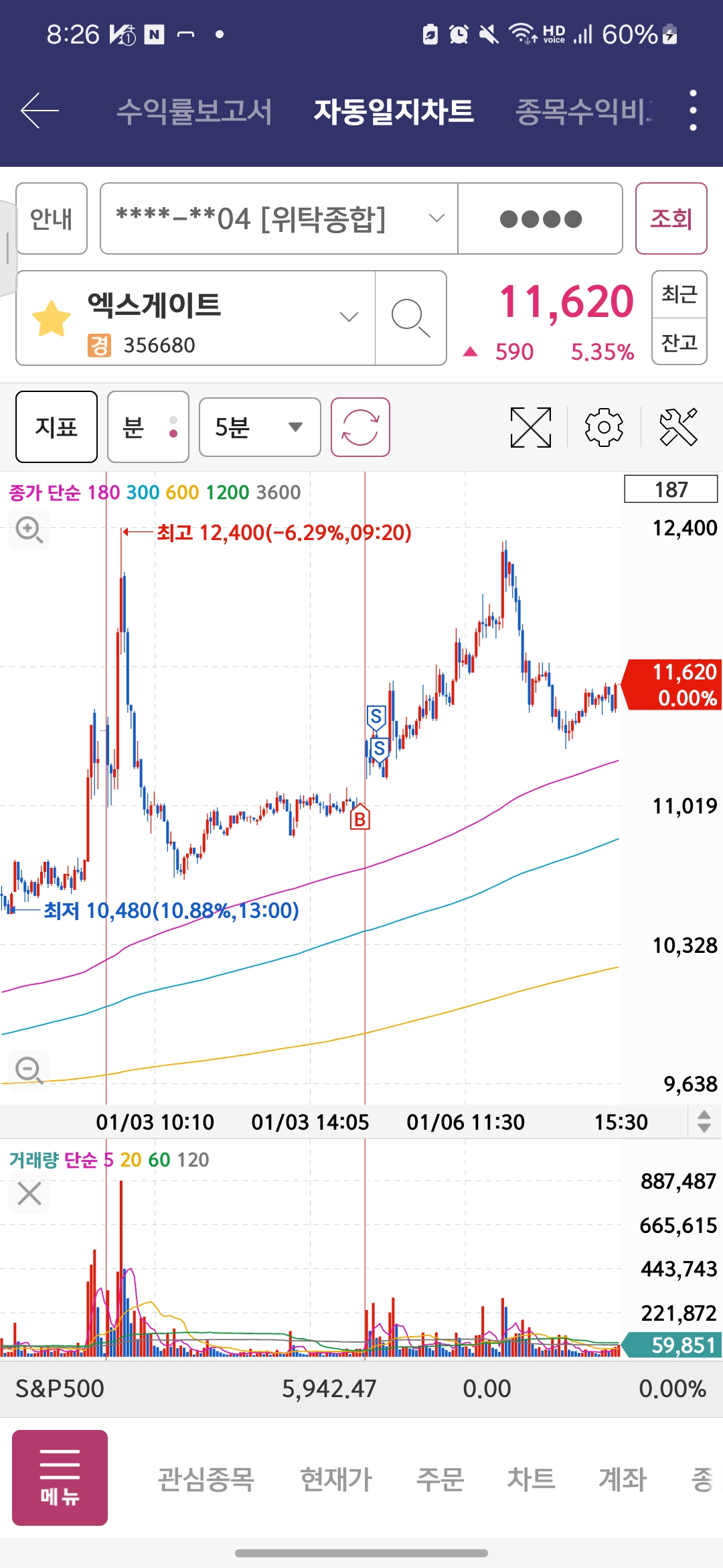 로봇 테마주로 전고점 부근에 차트가 위치해있고 분봉상에서도 3,5일선을 이탈하지않고 잘 버텨주고 있었다. 오전에도 다른 로봇주들이 조금씩 오를 때 이 종목은 아래로 한 번 뺏다가 점심때쯤 슈팅나와서 잔량 익절했다. 최근 장세에서 오전 30분만에 승부보지않고 테마가 강한경우 오전내내 상승하기도 하는 것 같다.