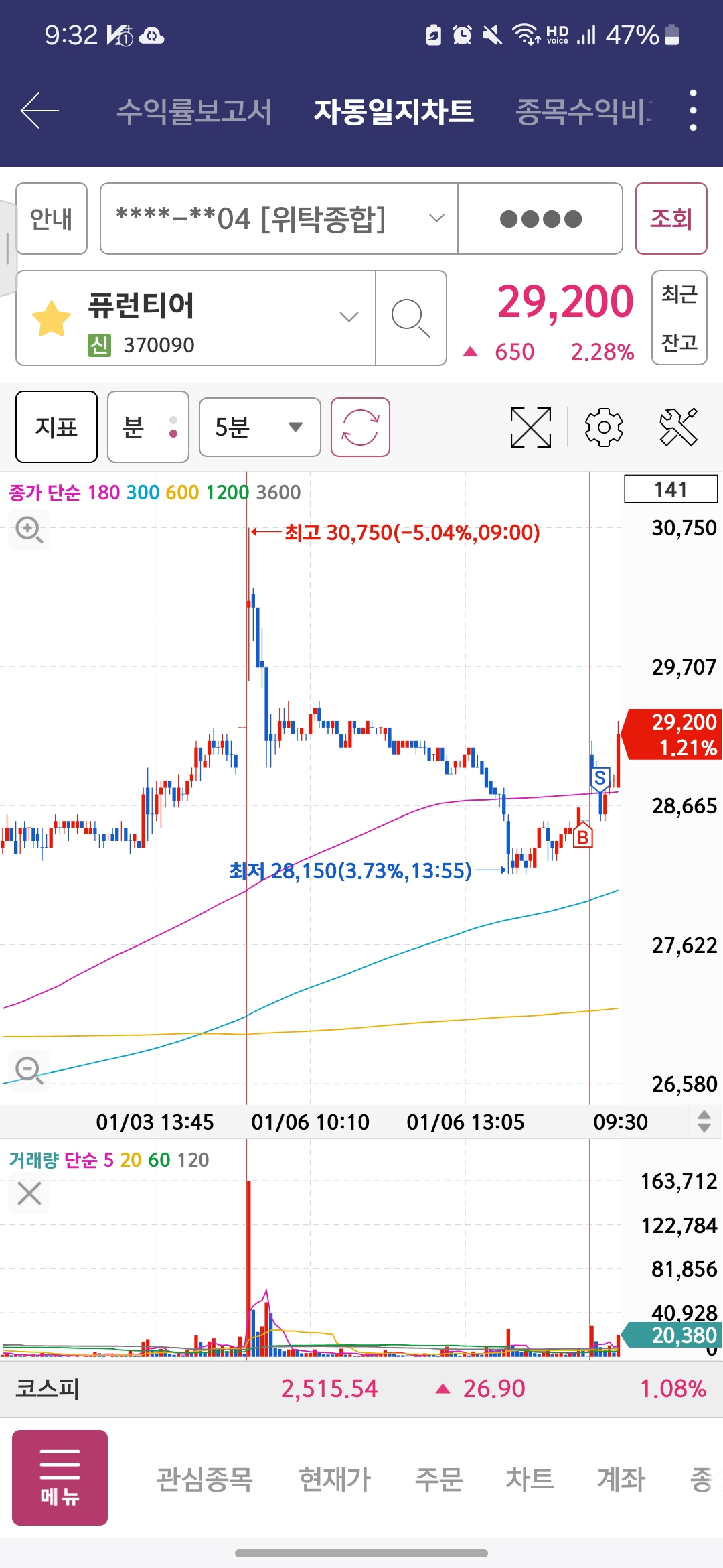 차트상 전고점 돌파자리고 3일선 닿을 때 1번, 5일선 닿기전 1번 매수해서 다음날 반응보고 팔려했는데 오전엔 손절가까지 가기전에 잔량 익절했다. 오후 종가즈음 5%넘게 올랐는데 개미털고 간듯하다.